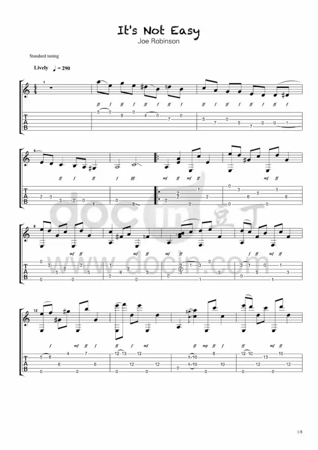 曲谱介绍: It´s《It´sNotEasy》吉他独奏谱,豆丁网编配出品,共有8张高清图谱。