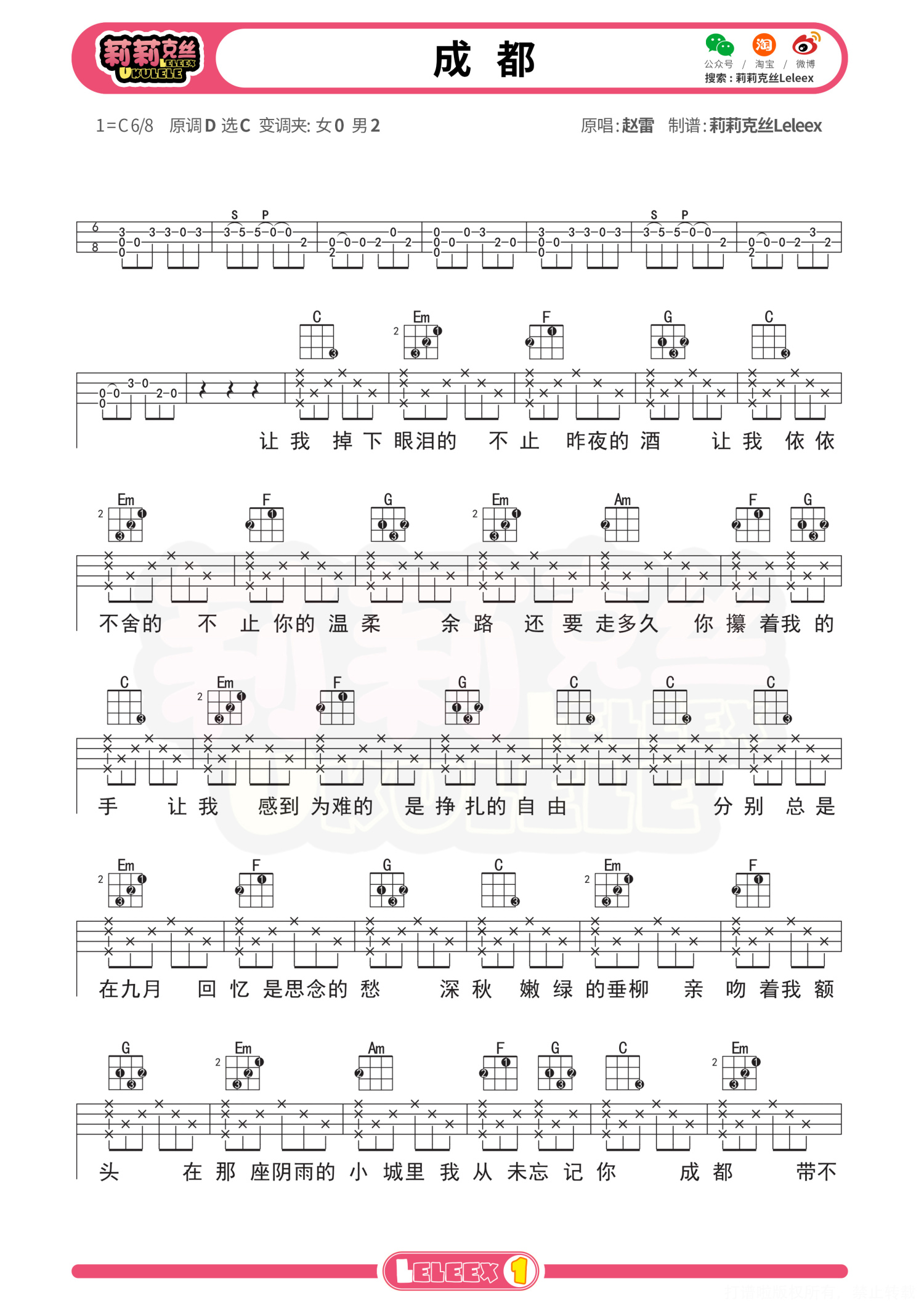 当前位置:琴谱网>尤克里里>成都