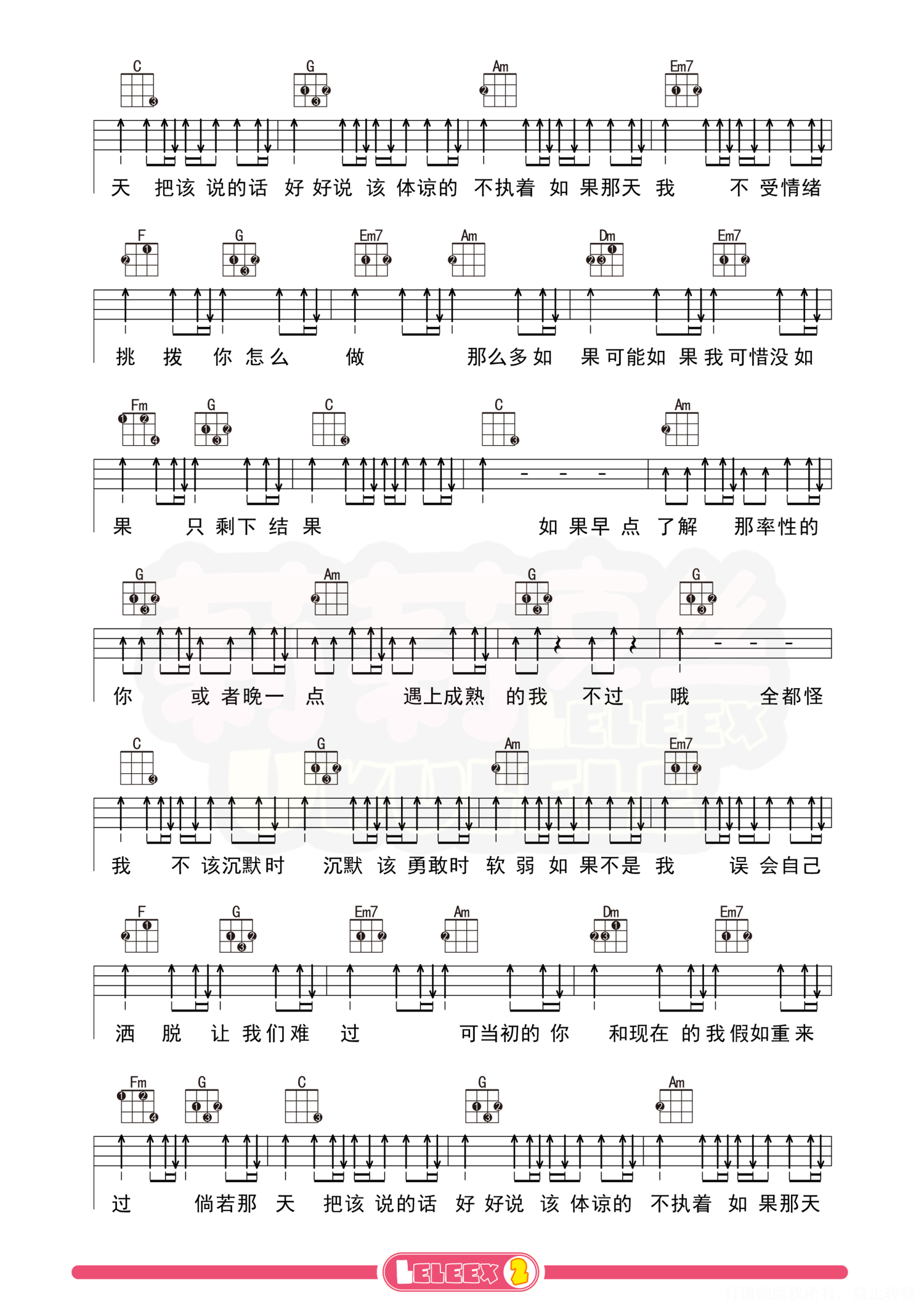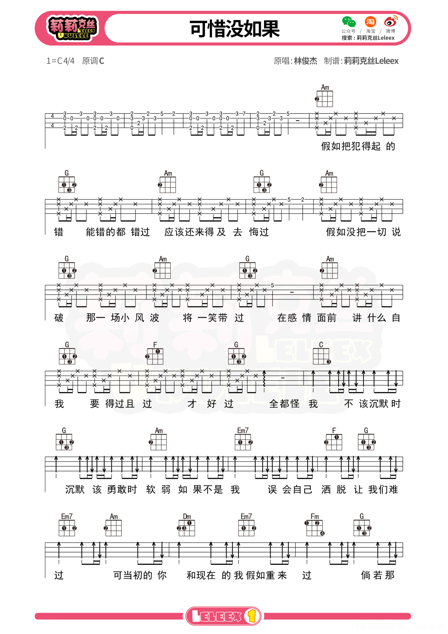 曲谱介绍:   弹唱教学   「可惜没如果」尤克里里曲谱 更多尤克里里曲谱/教学  关注@莉莉克丝Leleex