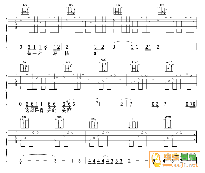 曲谱介绍: 刀郎《春光美》吉他弹唱谱,采用C调指法编配,虫虫吉他编配出品,共有2张高清图谱,免翻页排版设计。