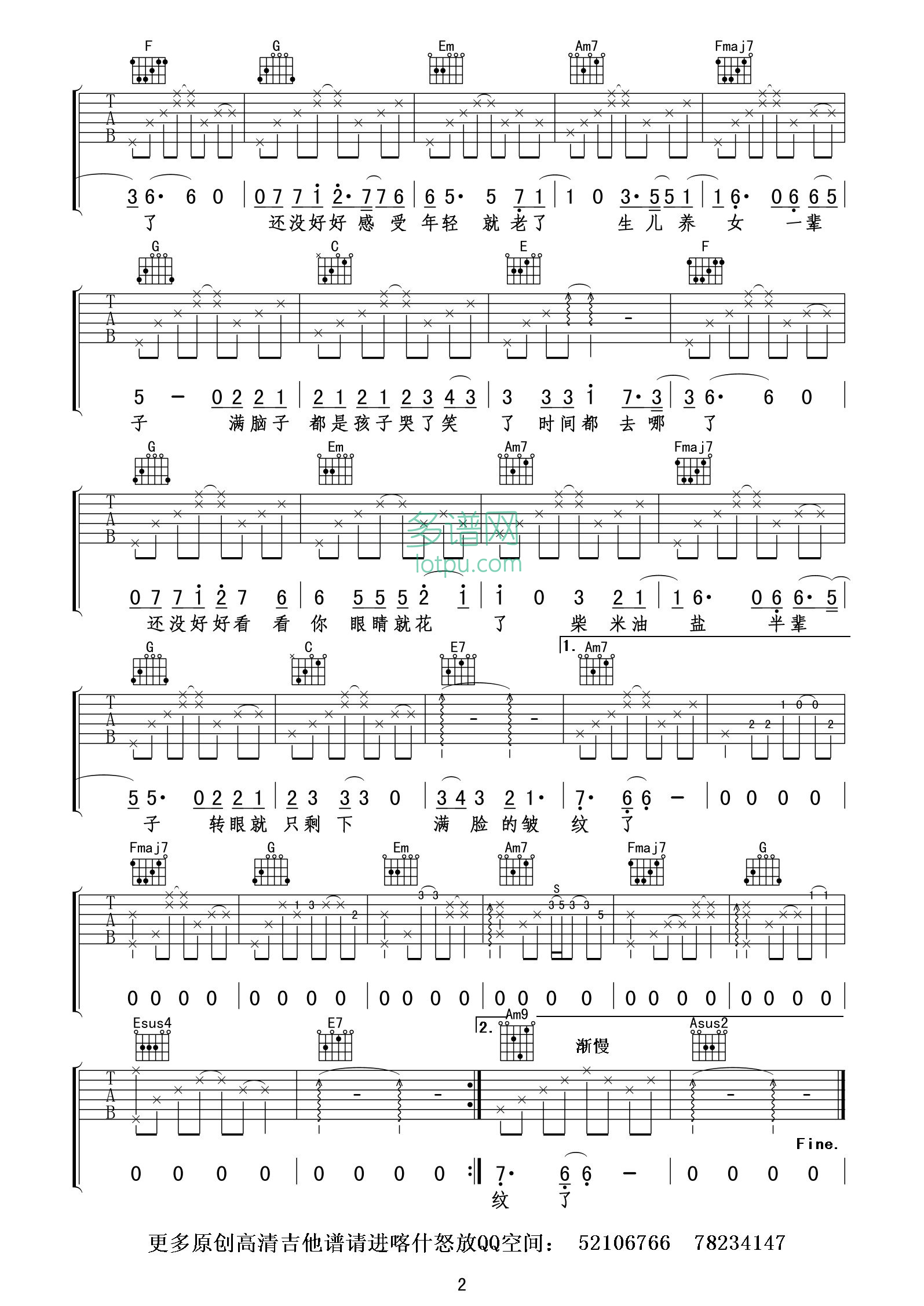 吉他弹唱F调来源:喀什怒放217 浏览2024-01-20 17:09发布图谱共2页