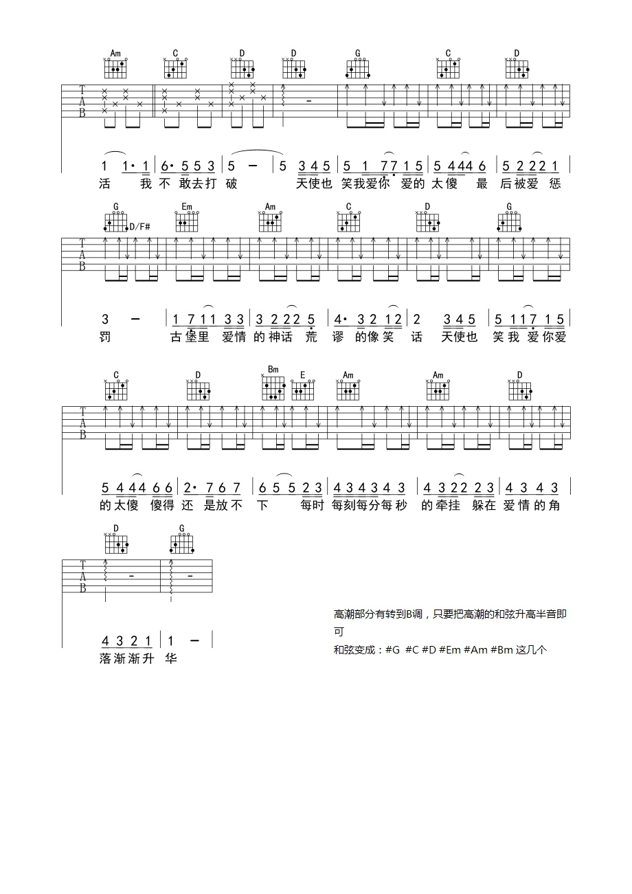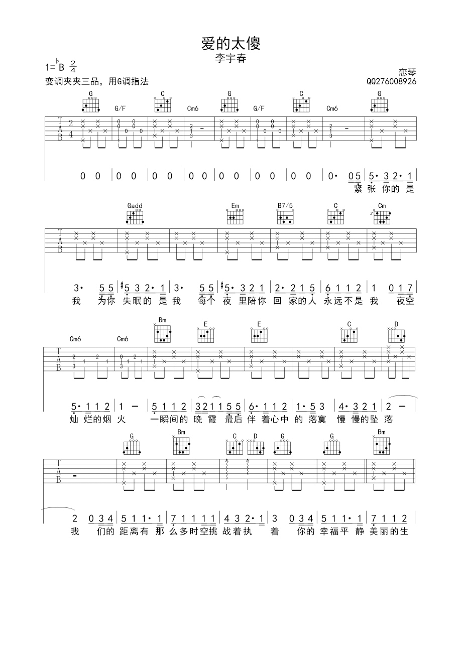曲谱介绍: 附前奏《爱的太傻》吉他弹唱谱,采用B调指法编配,共有2张高清图谱,免翻页排版设计。