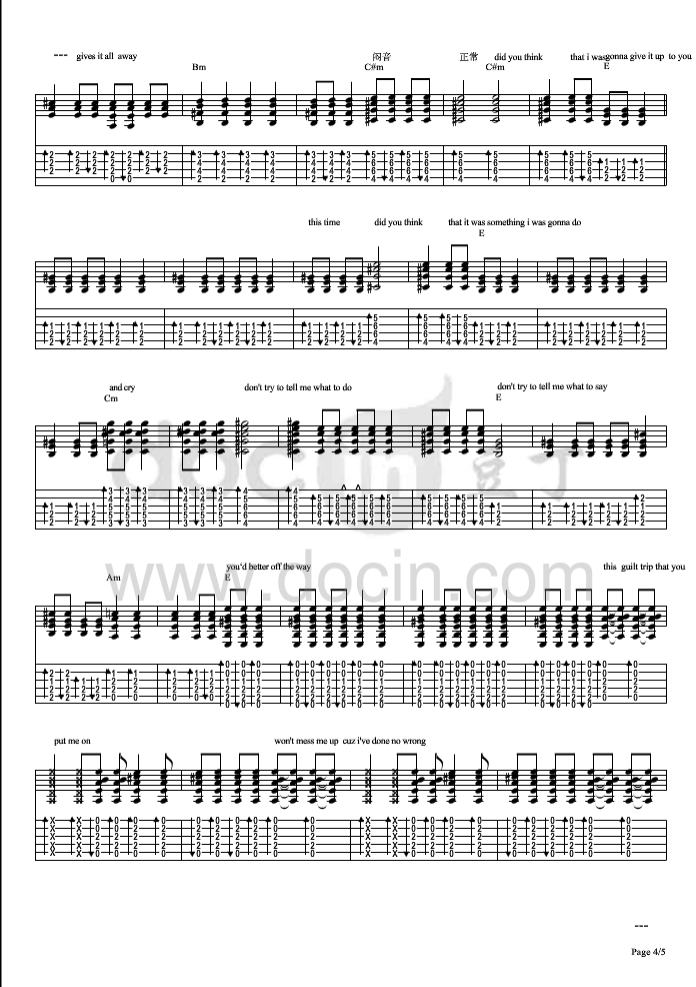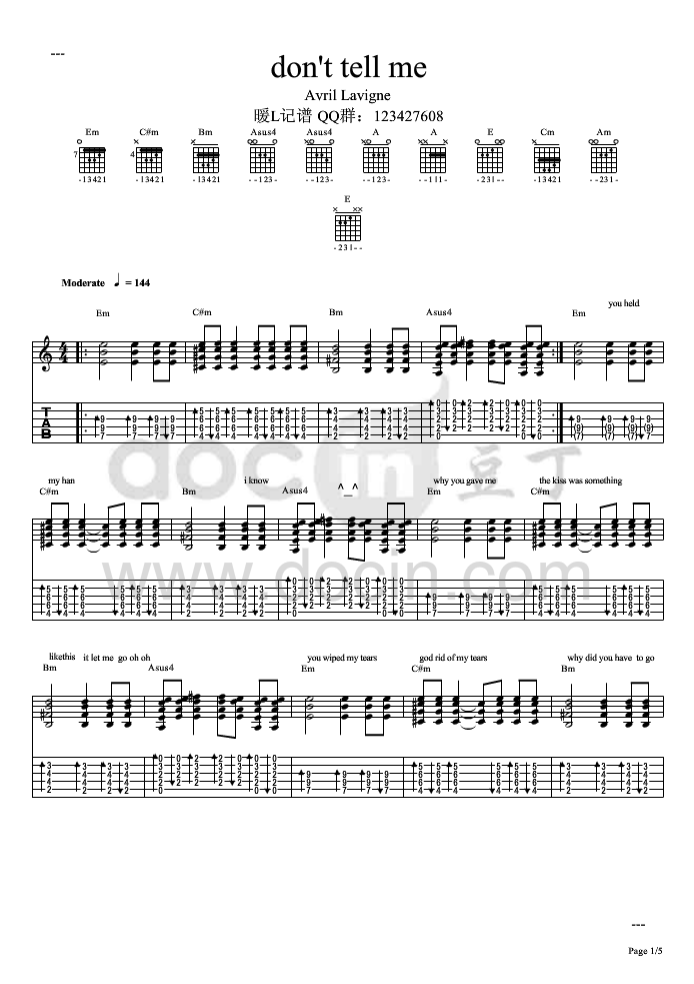 曲谱介绍: dont《donttellme》吉他独奏谱,豆丁网编配出品,共有5张高清图谱。