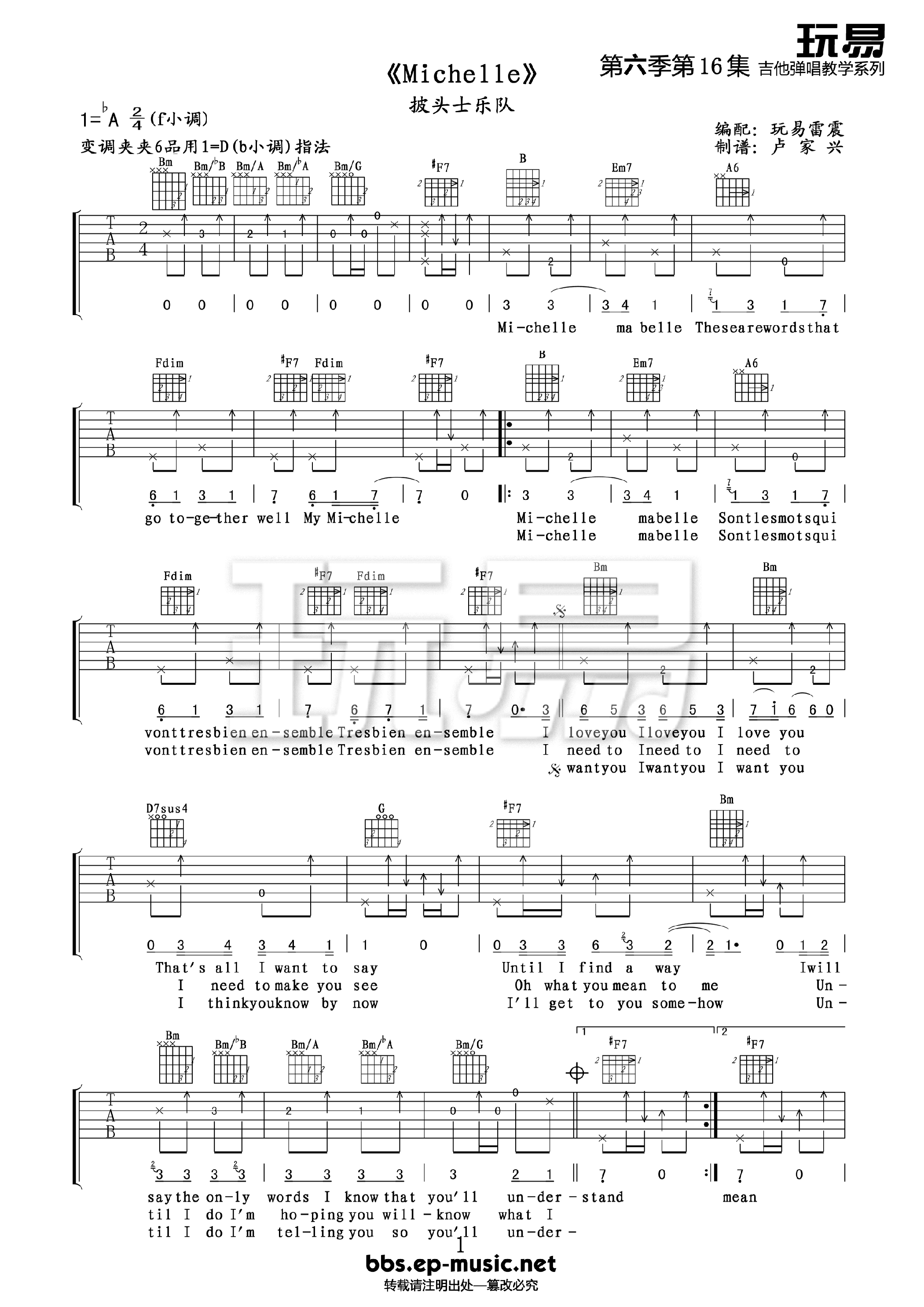 当前位置:琴谱网>吉他弹唱>MichelleA调