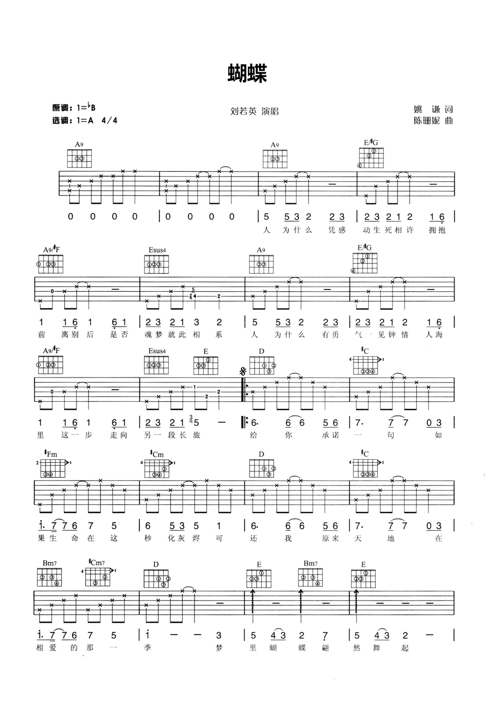 当前位置:琴谱网>吉他弹唱>蝴蝶
