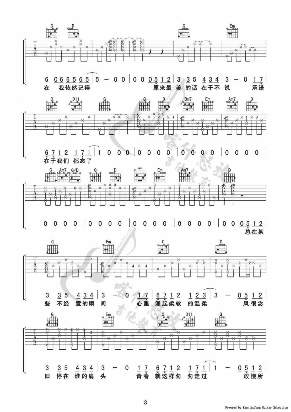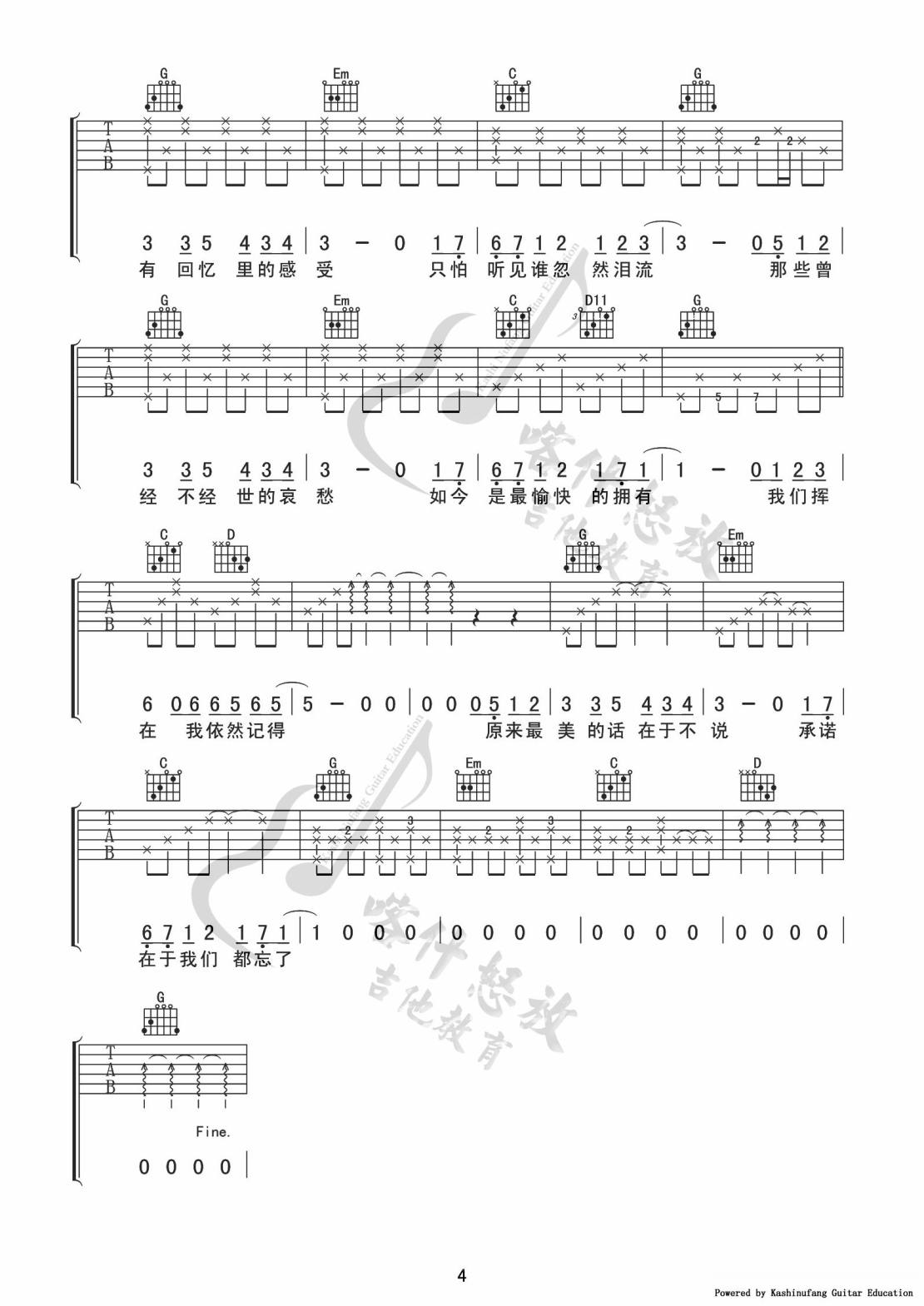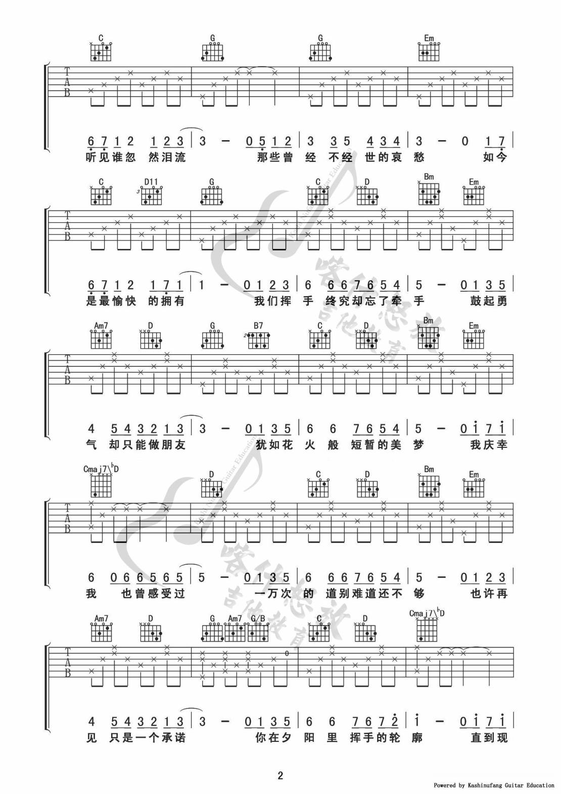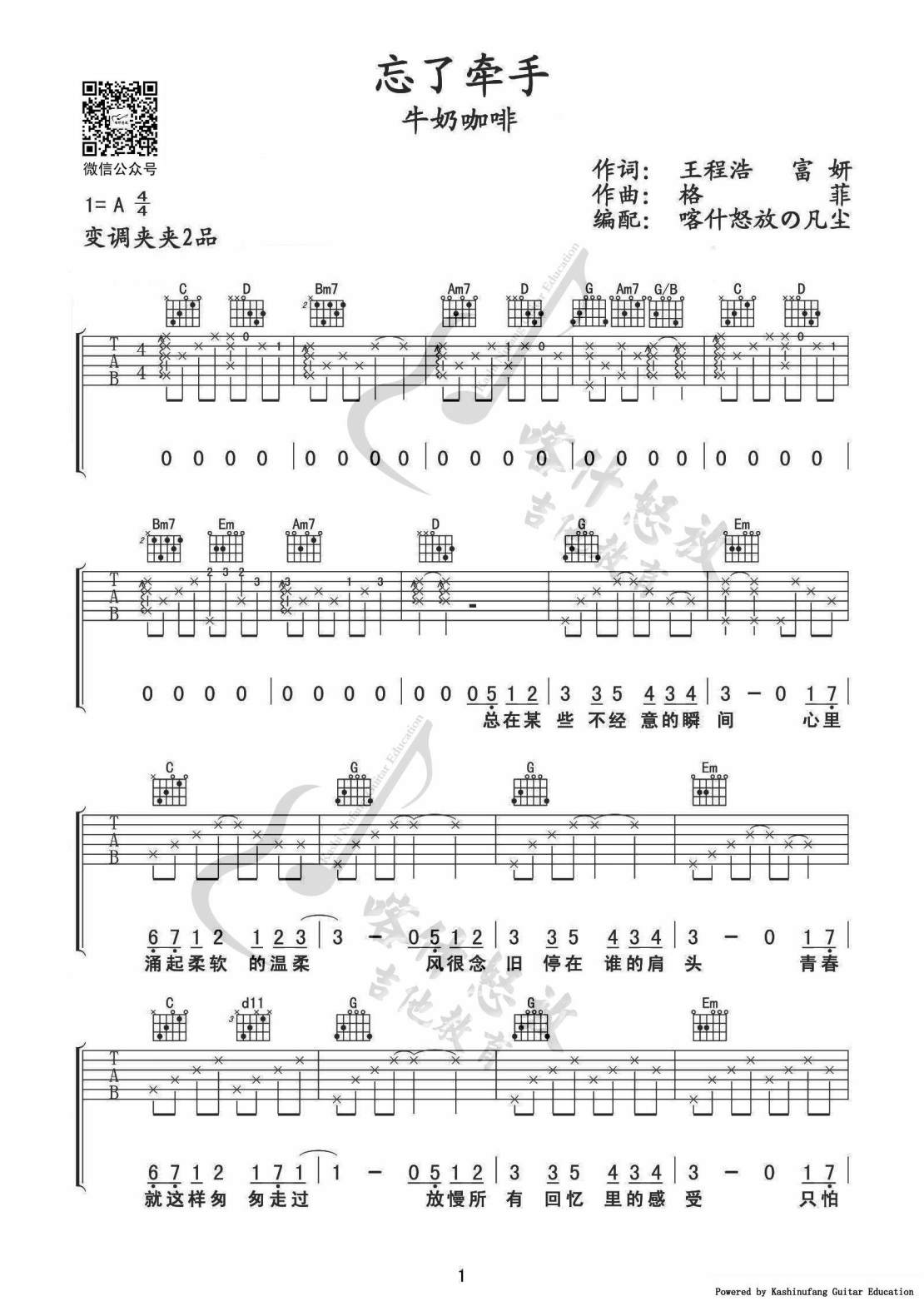 曲谱介绍: 牛奶咖啡《忘了牵手》吉他弹唱谱,采用A调指法编配,喀什怒放编配出品,共有4张高清图谱。