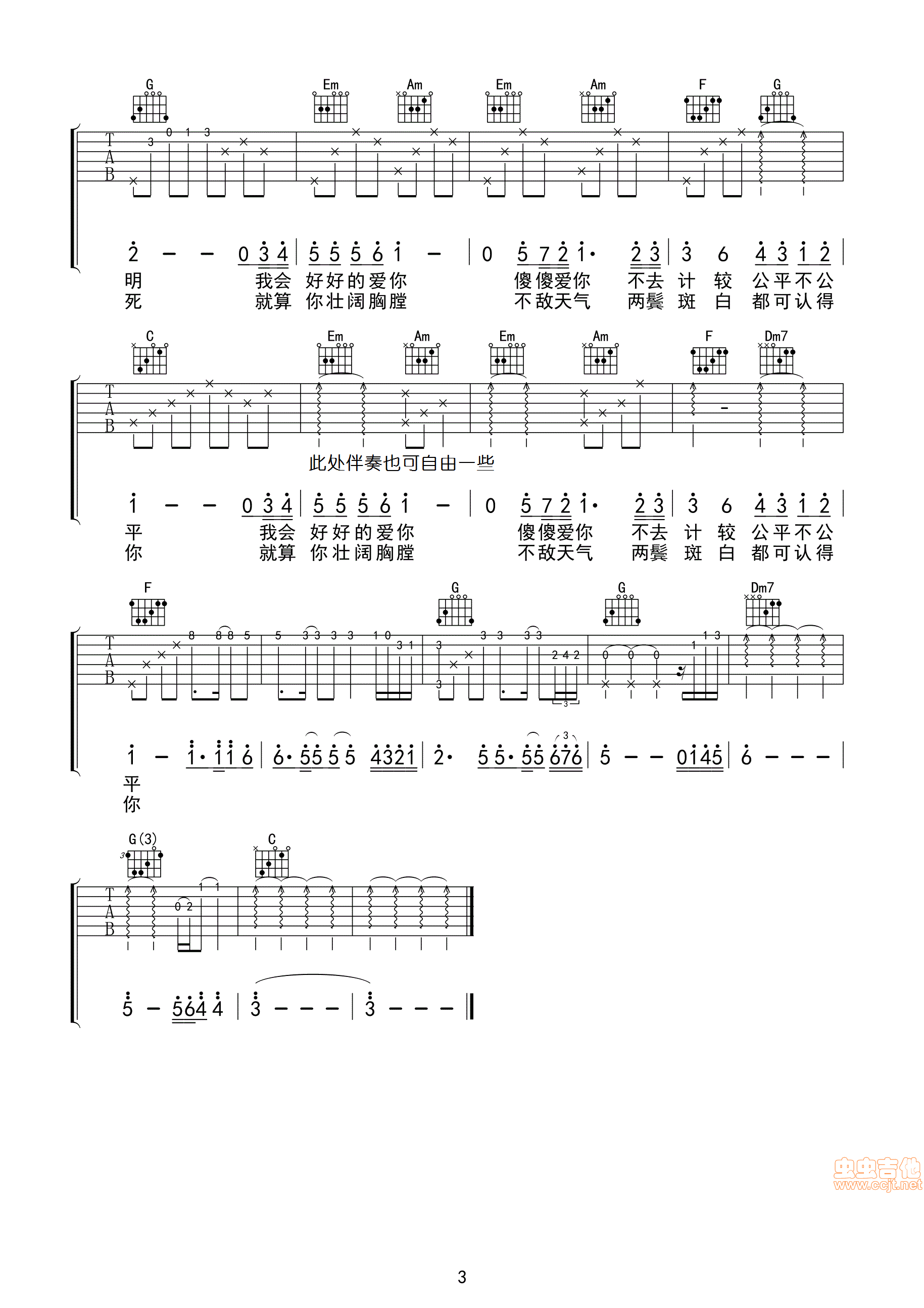 吉他弹唱C调来源:晓涛吉他教室166 浏览2024-01-20 17:55发布图谱共3页