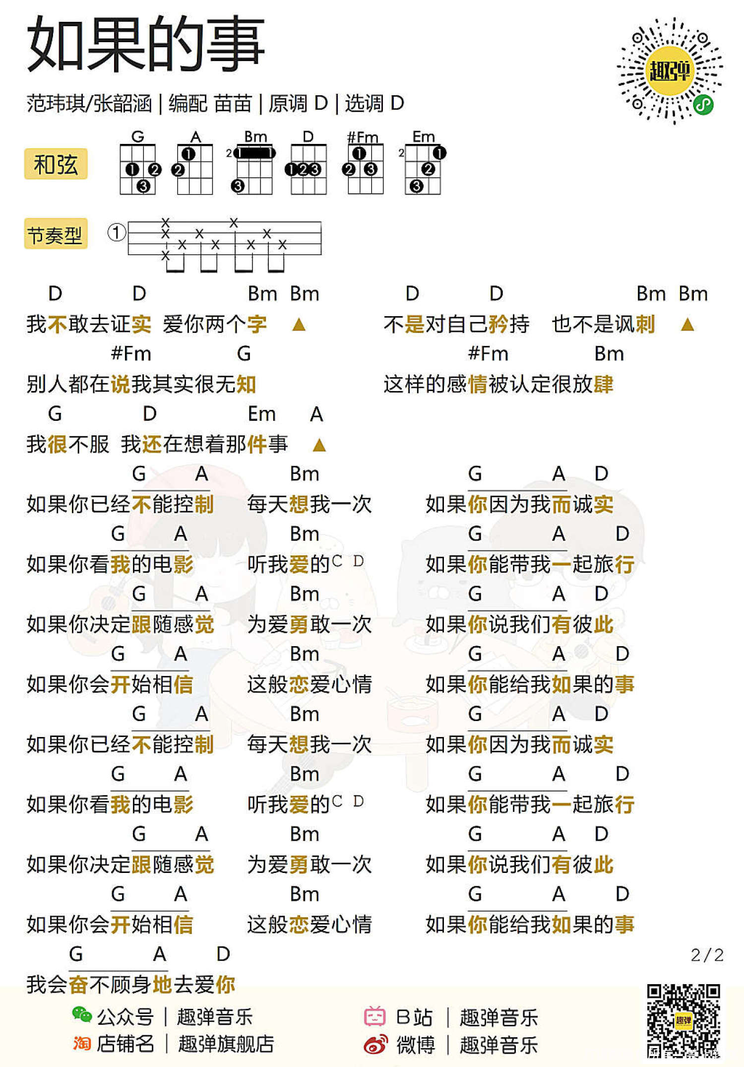 曲谱介绍: 张韶涵&范玮琪《如果的事》尤克里里谱,共有1张高清图谱,免翻页排版设计。
