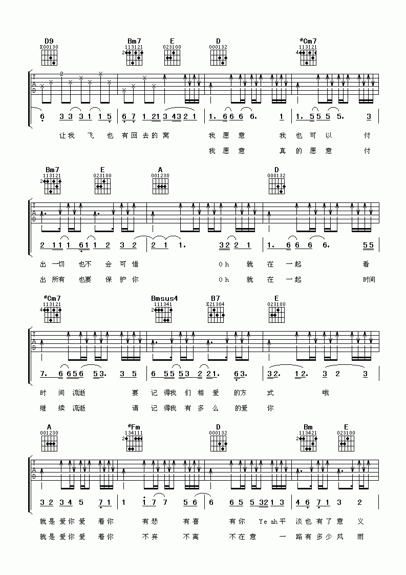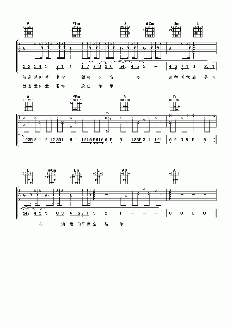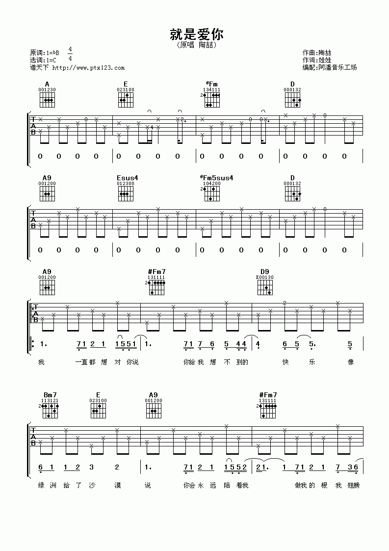 曲谱介绍: 陶喆《陶喆就是爱你》吉他弹唱谱,共有3张高清图谱。