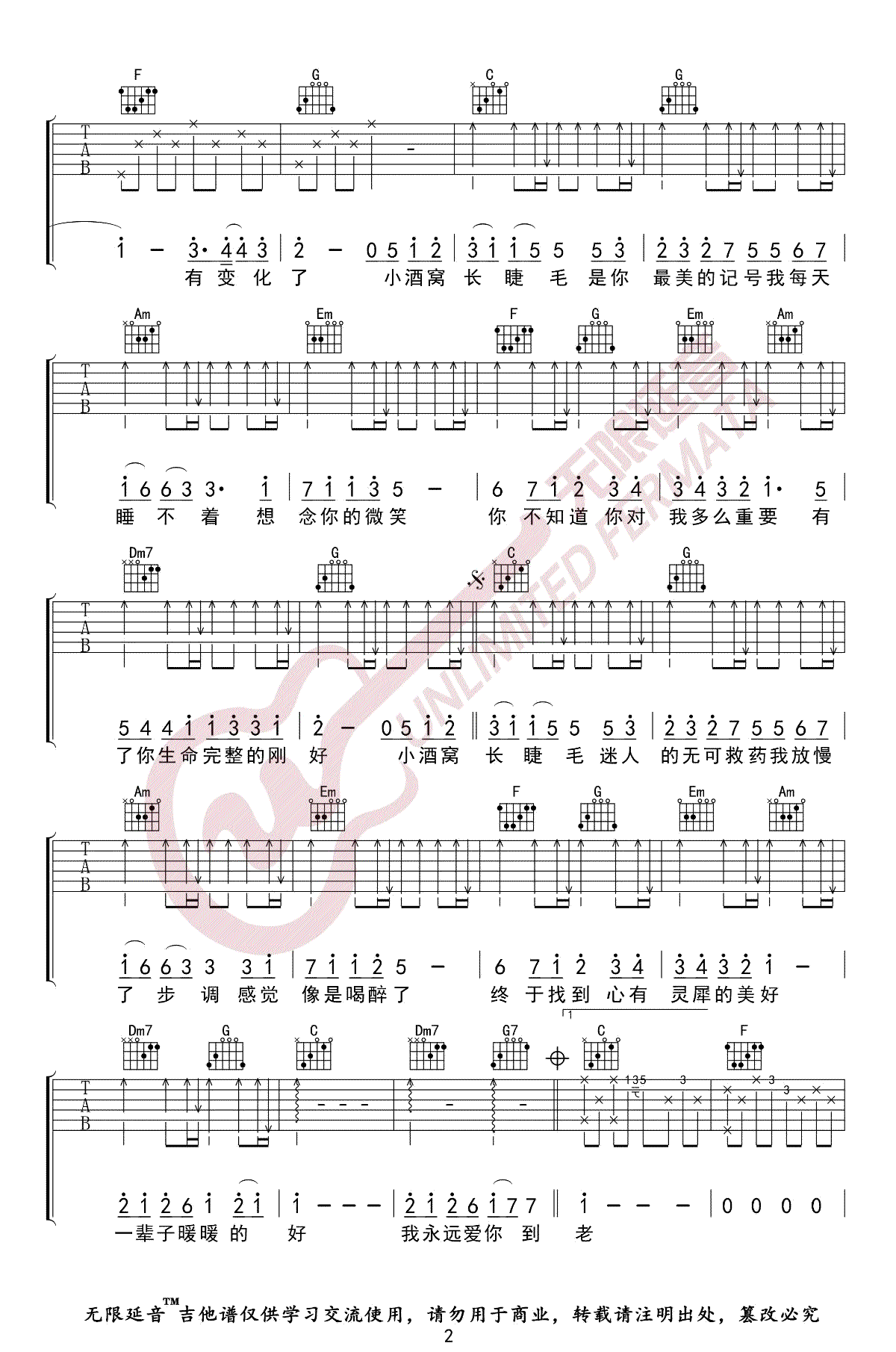小酒窝吉他谱 - 林俊杰/蔡卓妍 - C调吉他弹唱谱