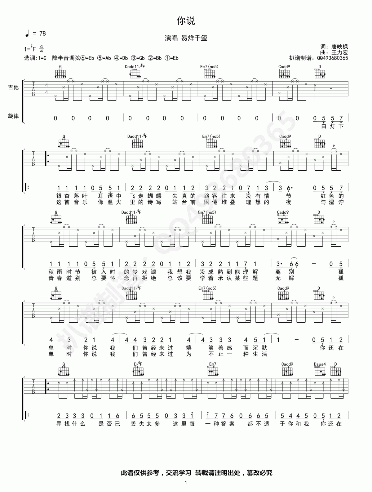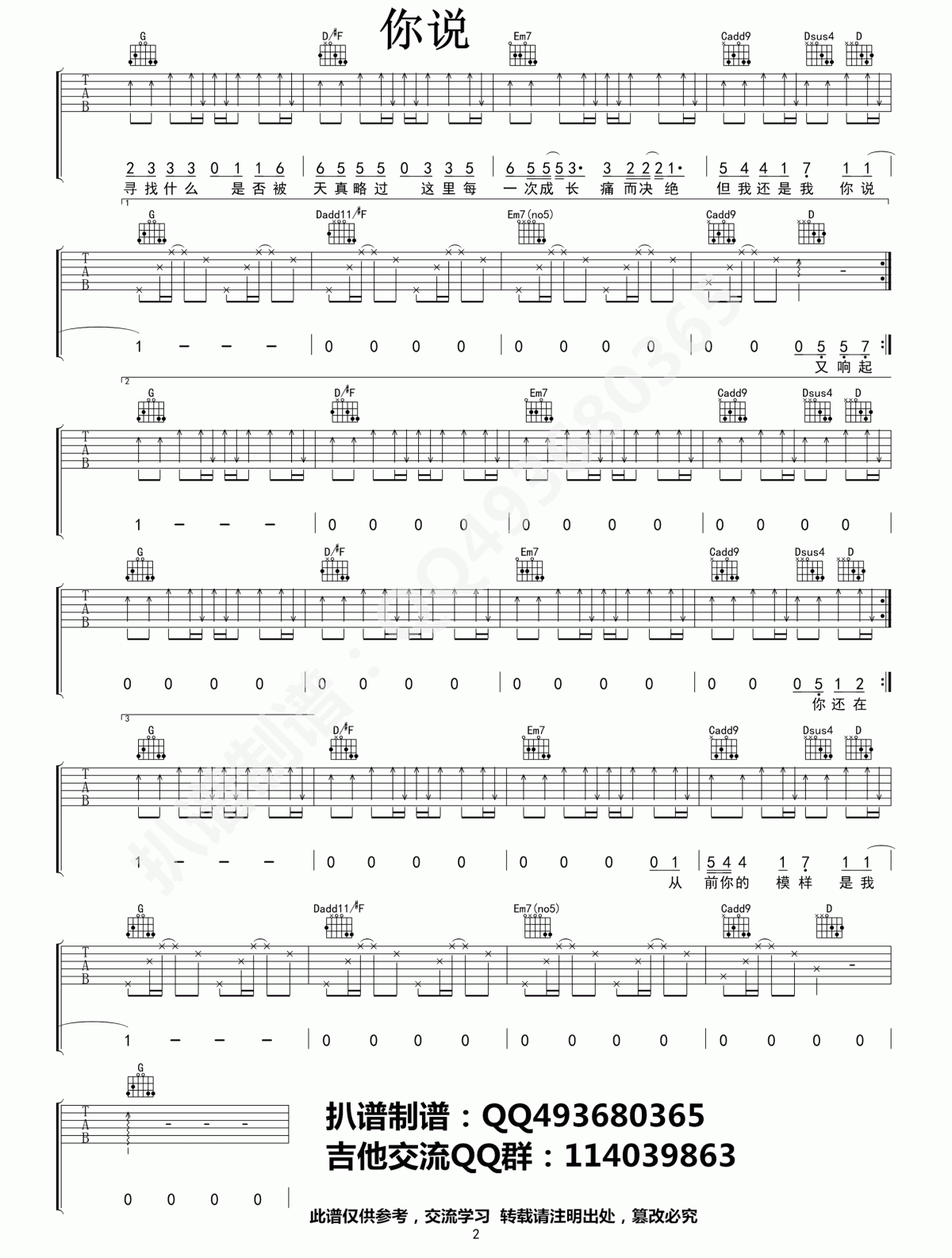 曲谱介绍: 你说《你说_》吉他弹唱谱,共有2张高清图谱,免翻页排版设计。