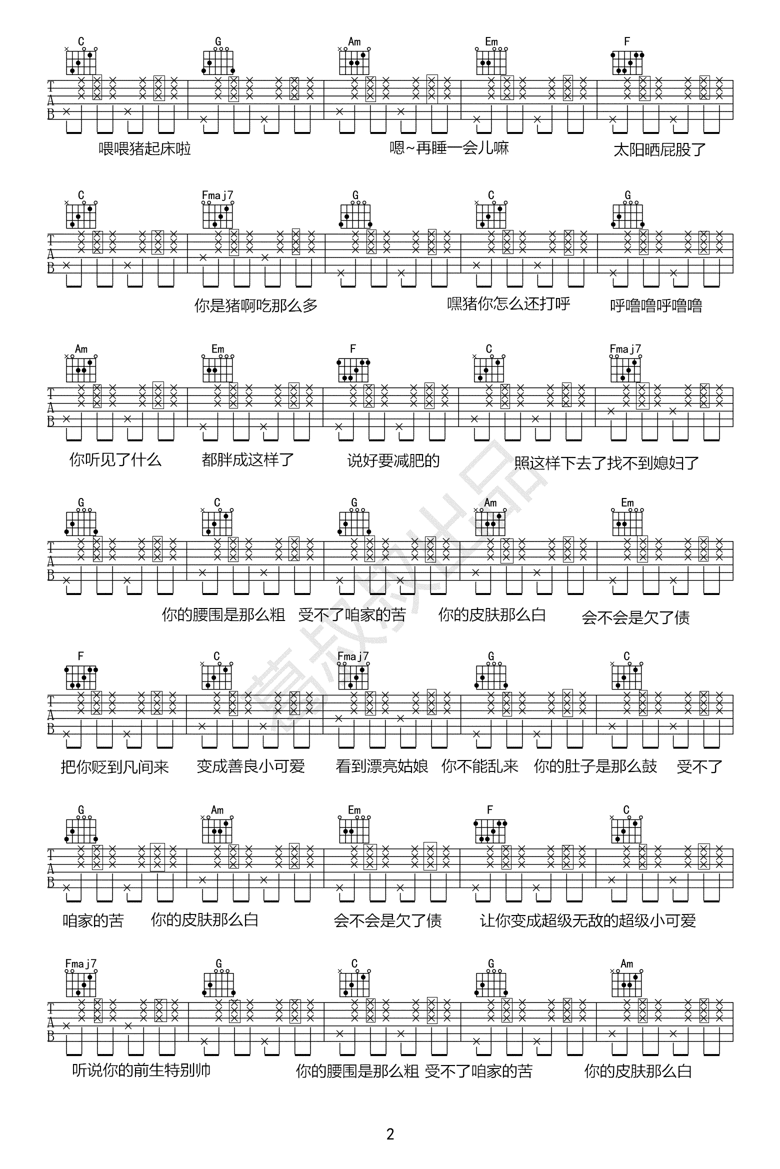 当前位置:琴谱网>吉他弹唱>喂猪