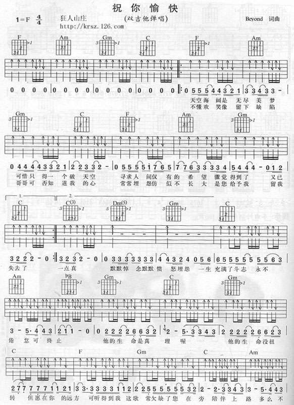 祝你愉快吉他谱 - Beyond - F调吉他弹唱谱
