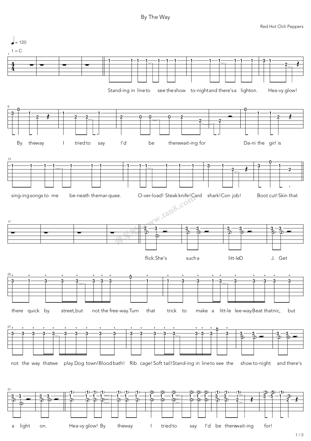 当前位置:琴谱网>吉他弹唱>by the way
