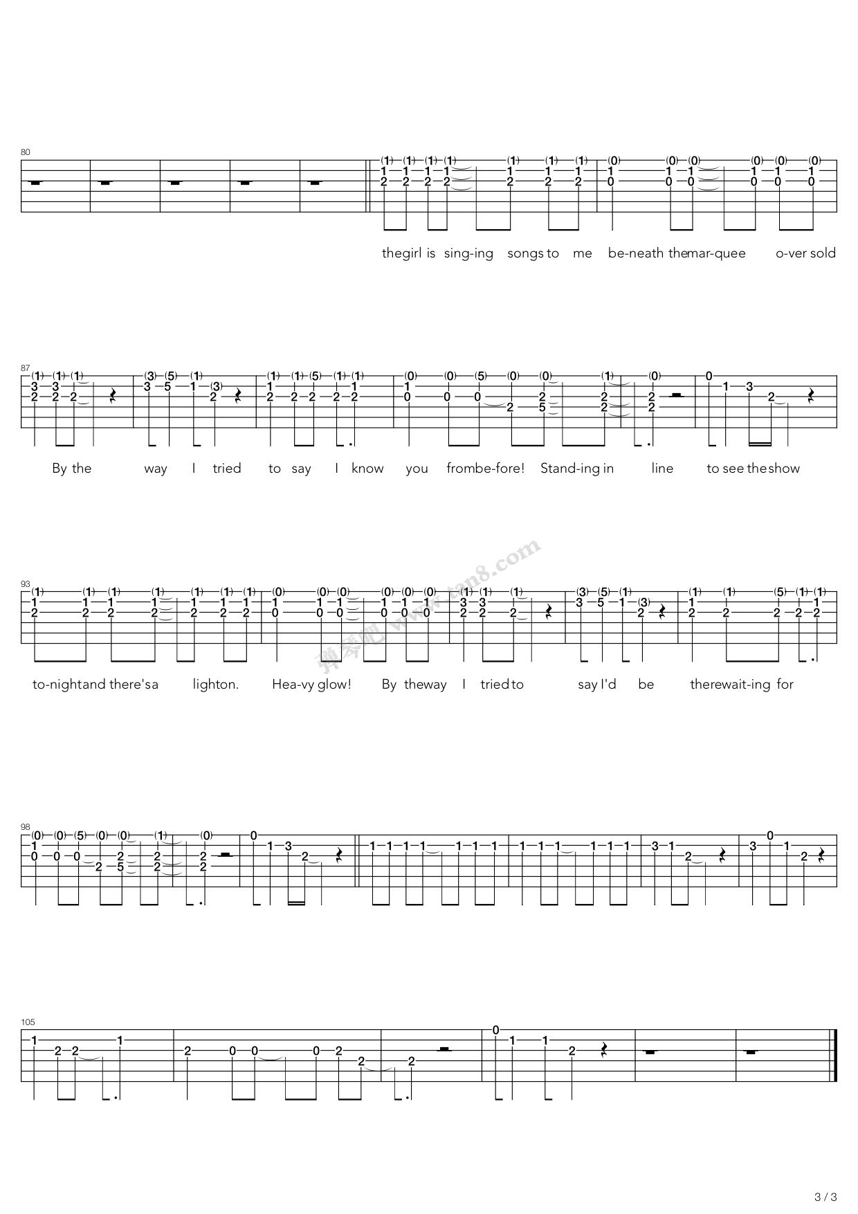 曲谱介绍: by《bytheway》吉他弹唱谱,采用C调指法编配,弹琴吧编配出品,共有3张高清图谱。