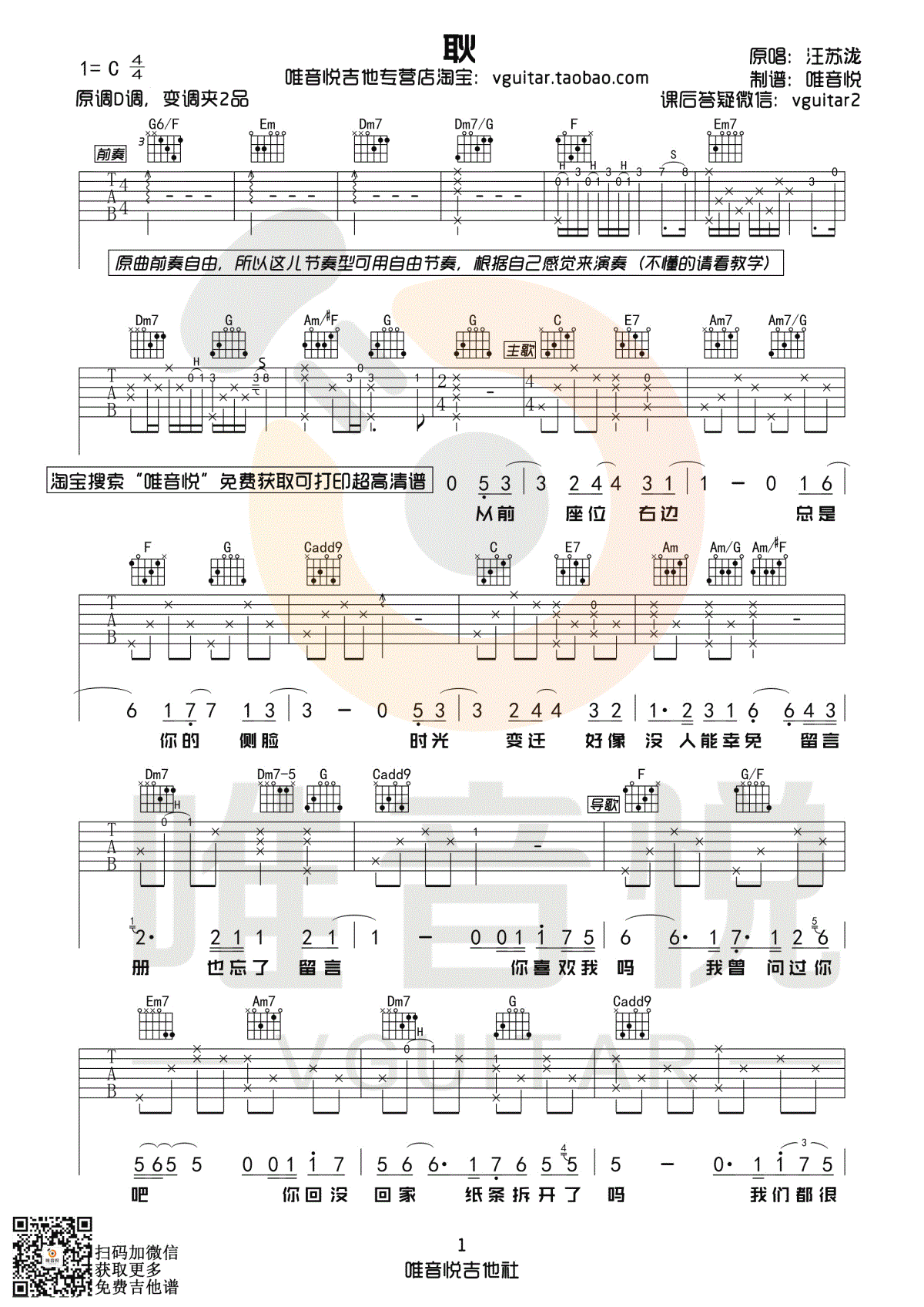 吉他弹唱C调来源:唯音悦128 浏览2024-01-20 18:53发布图谱共4页