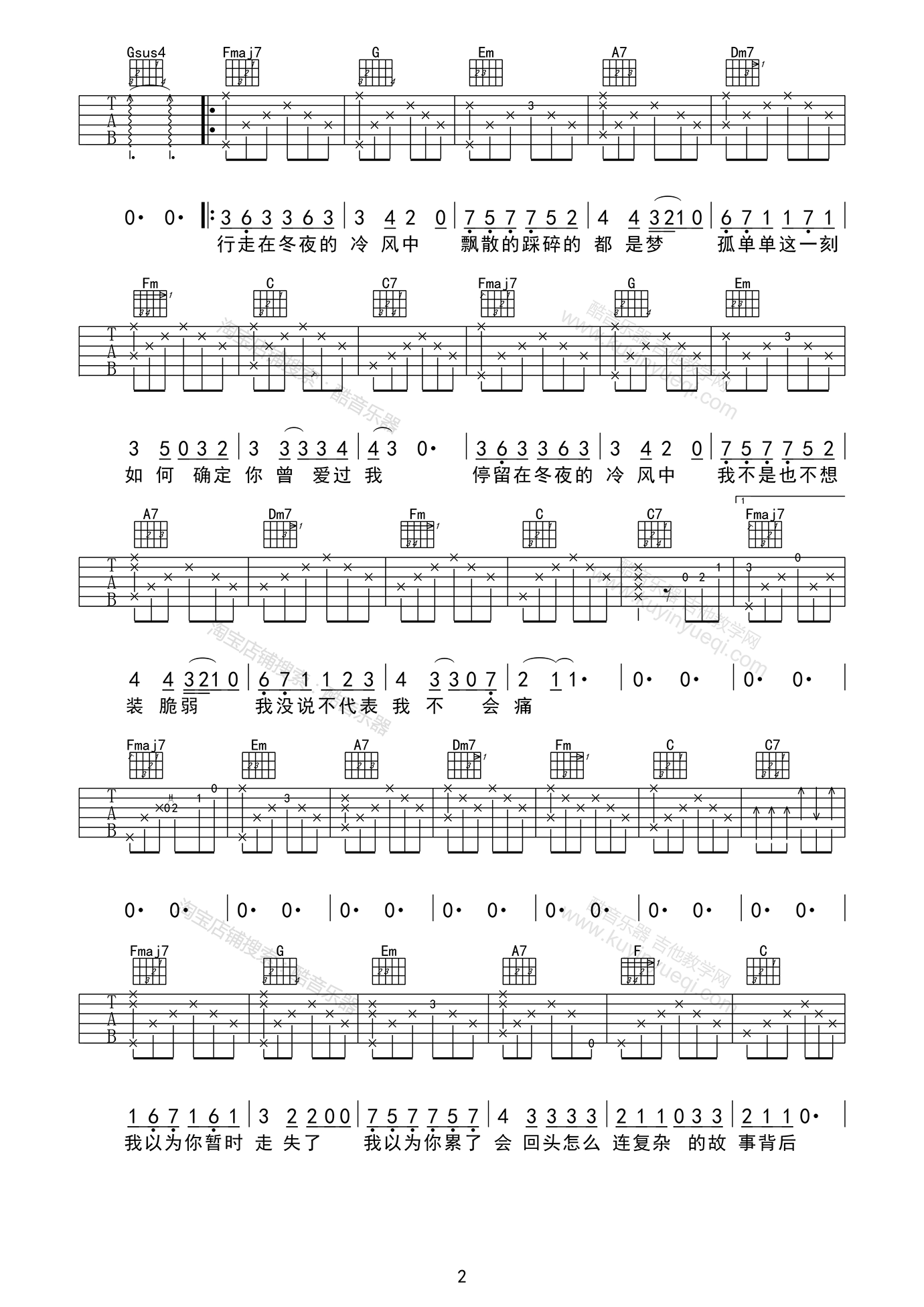 当前位置:琴谱网>吉他弹唱>走在冷风中