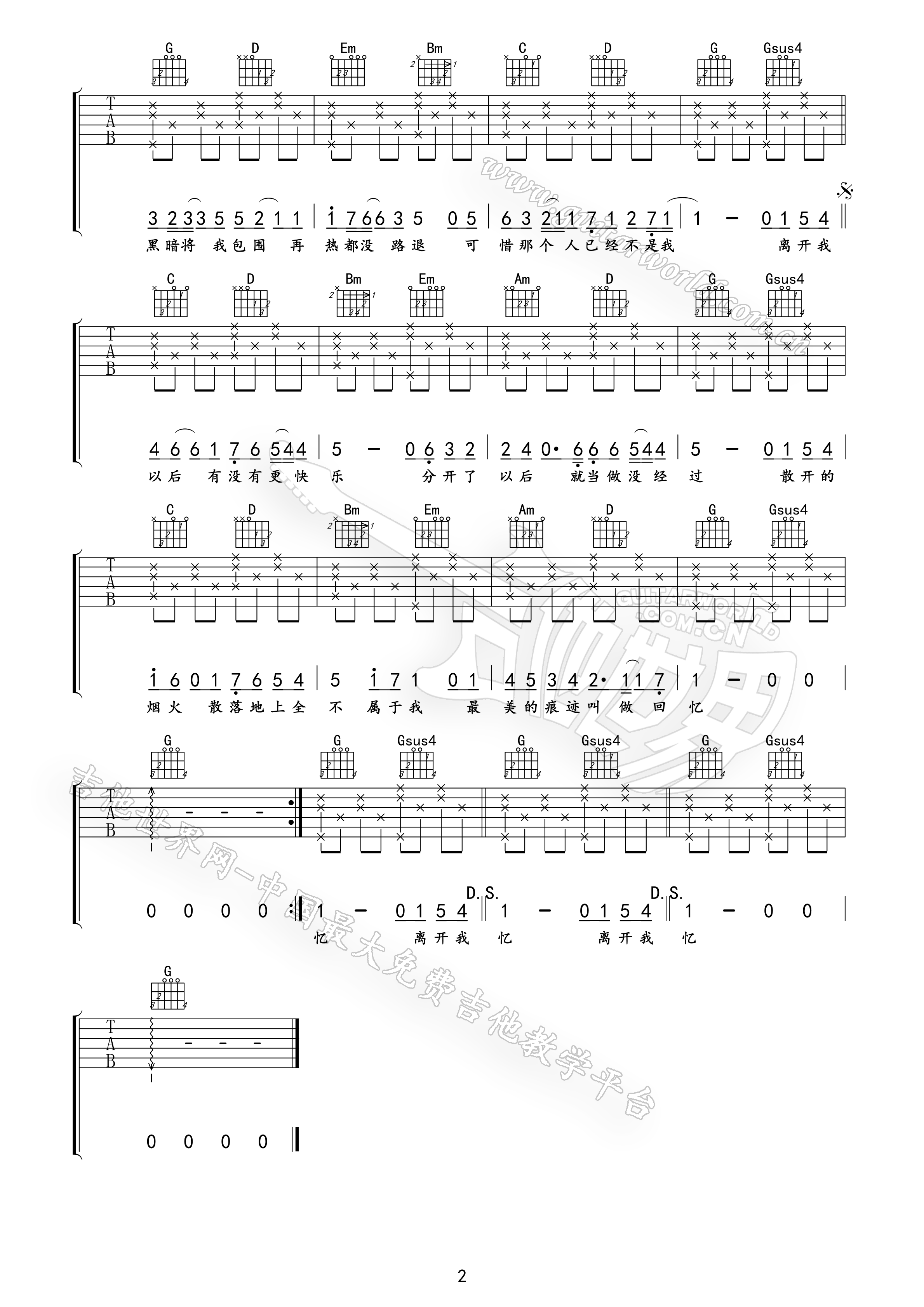 曲谱介绍: 丁浩然《离开以后》吉他弹唱谱,采用A调指法编配,吉他世界编配出品,共有2张高清图谱,免翻页排版设计。