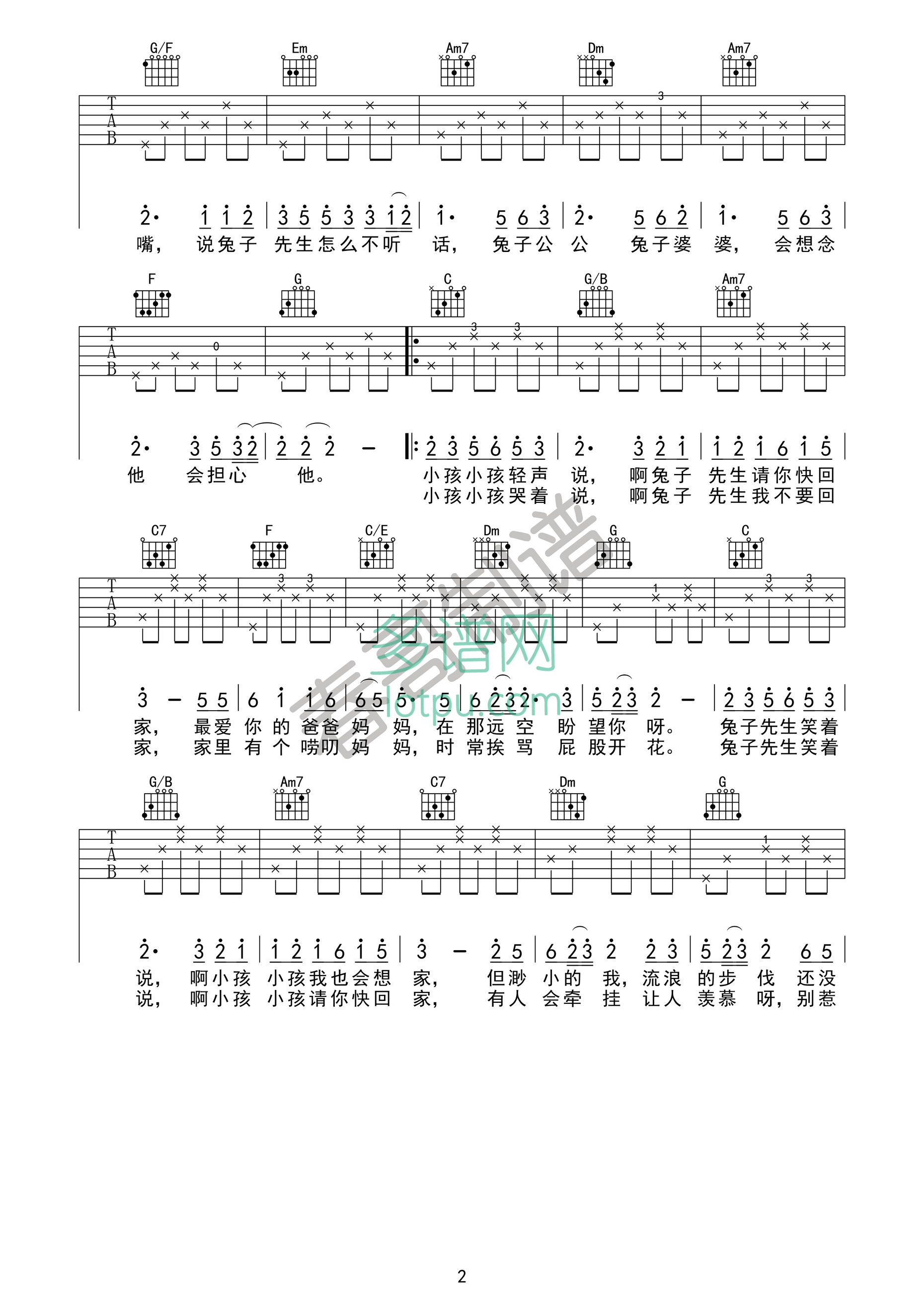 当前位置:琴谱网>吉他弹唱>兔子先生