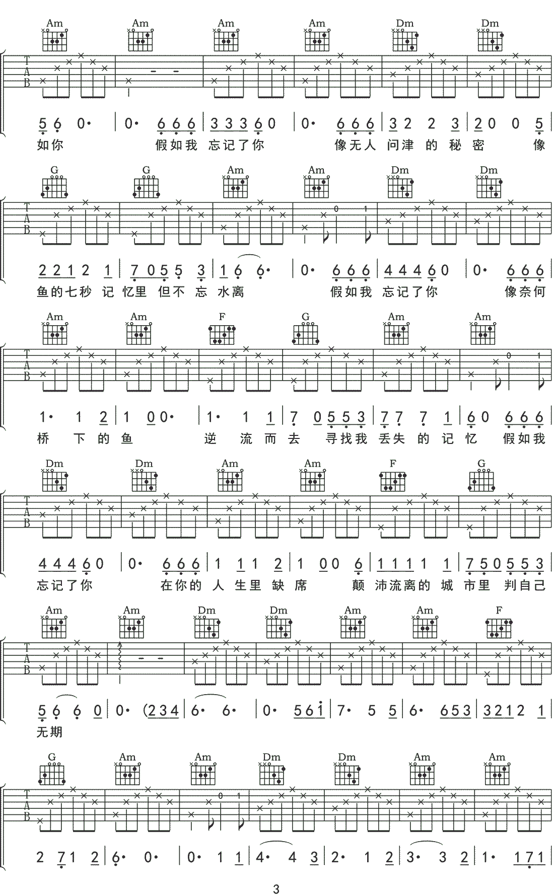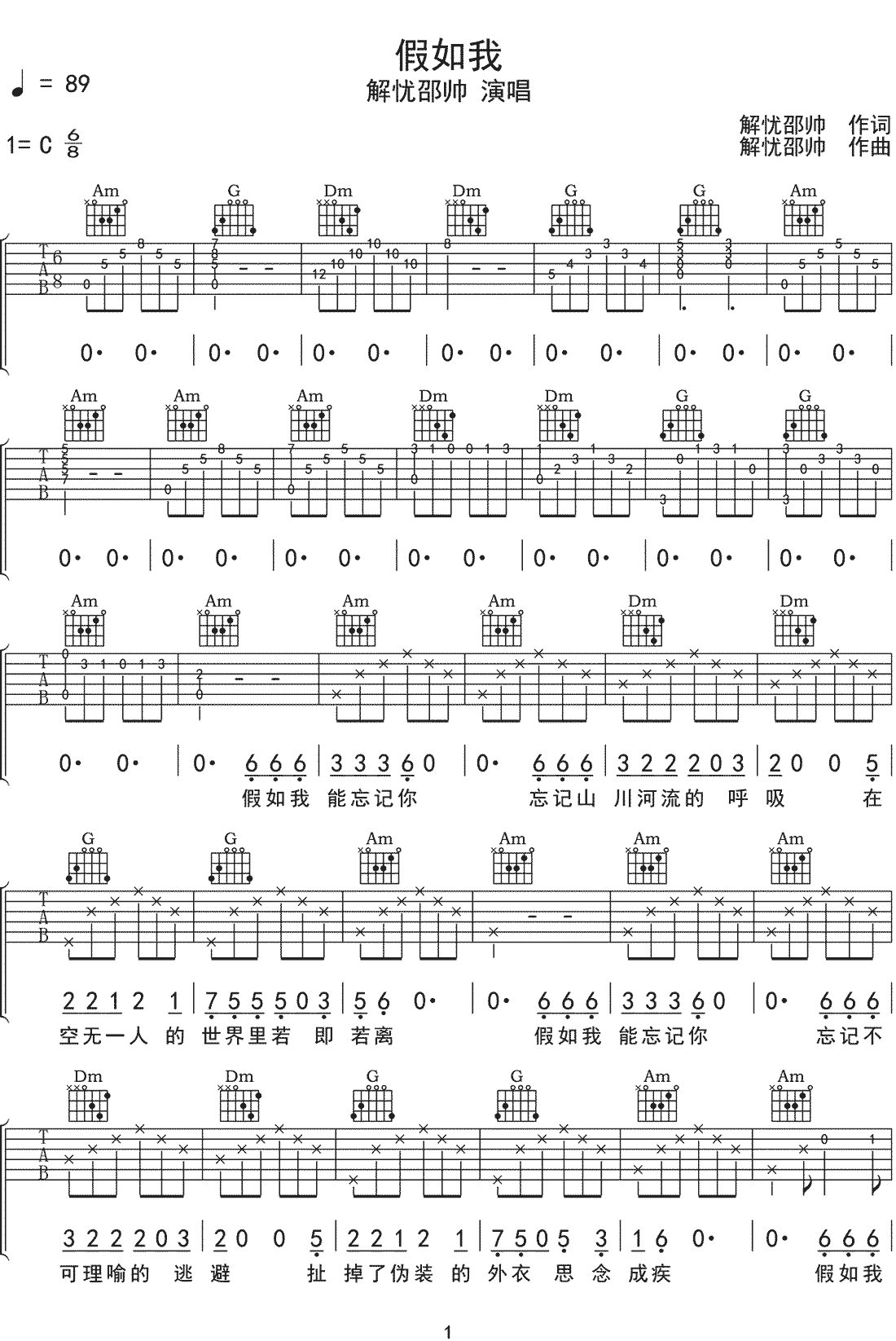 曲谱介绍: 附前奏《假如我》吉他弹唱谱,采用C调指法编配,共有4张高清图谱。