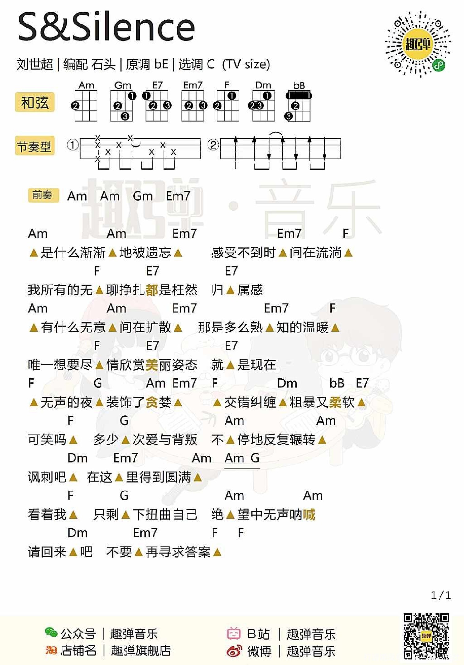 曲谱介绍: 刘世超《S&Silence》尤克里里谱,共有1张高清图谱,免翻页排版设计。