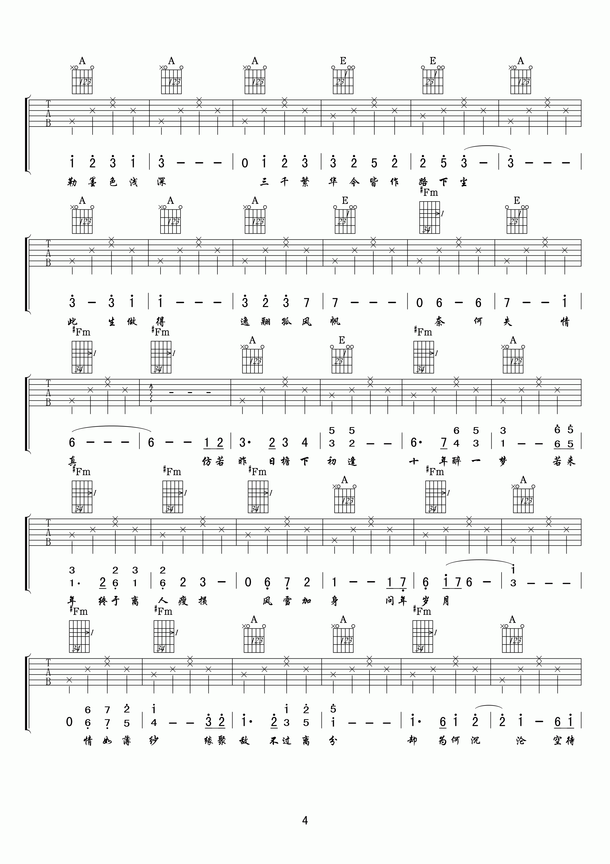 曲谱介绍: 王朝《空待》吉他弹唱谱,采用A调指法编配,共有4张高清图谱。