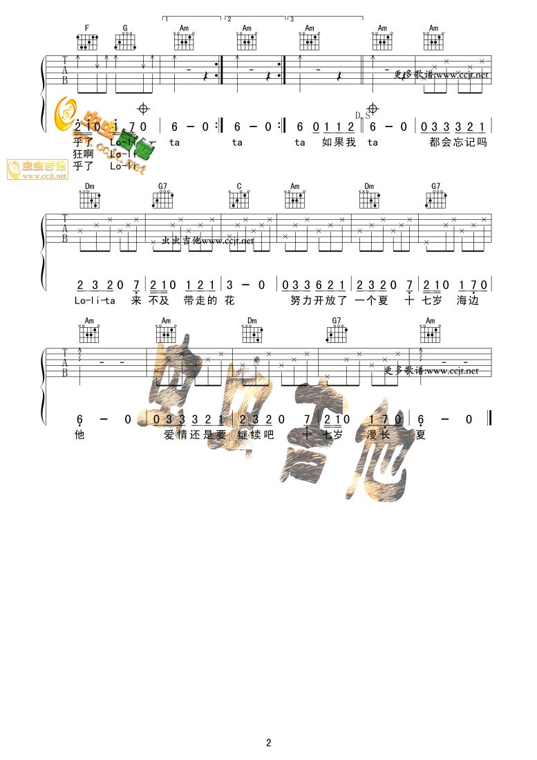 曲谱介绍: 卓亚君《洛丽塔》吉他弹唱谱,采用C调指法编配,虫虫吉他编配出品,共有2张高清图谱,免翻页排版设计。