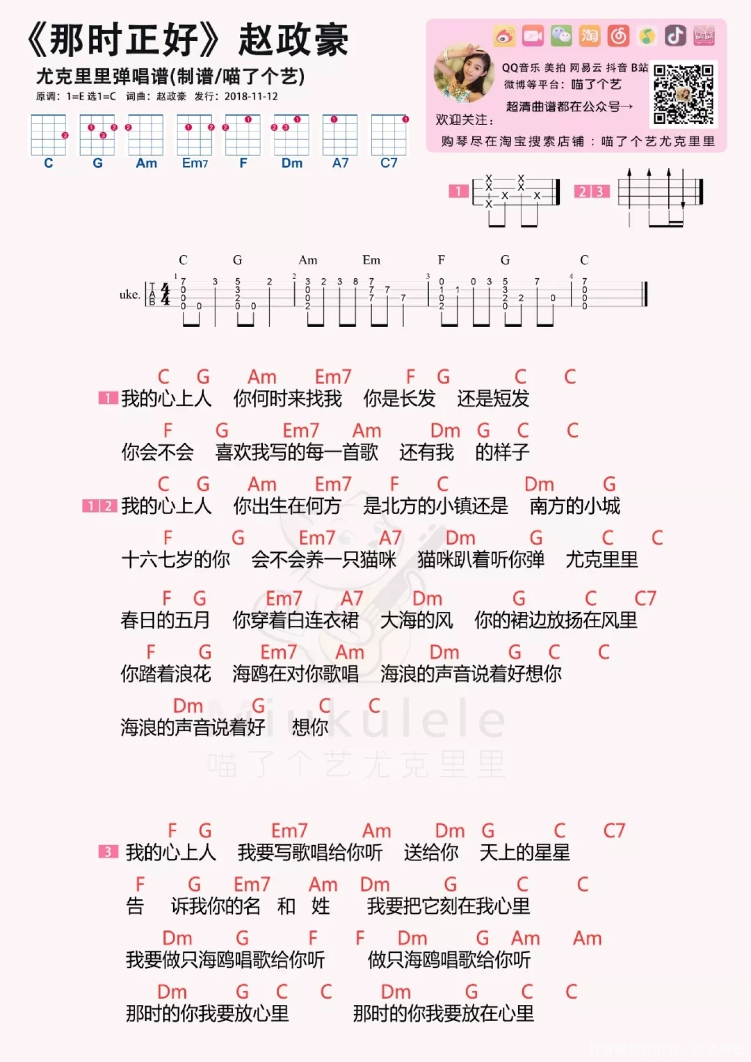 曲谱介绍: 现场演绎:   那时正好 尤克里里谱: