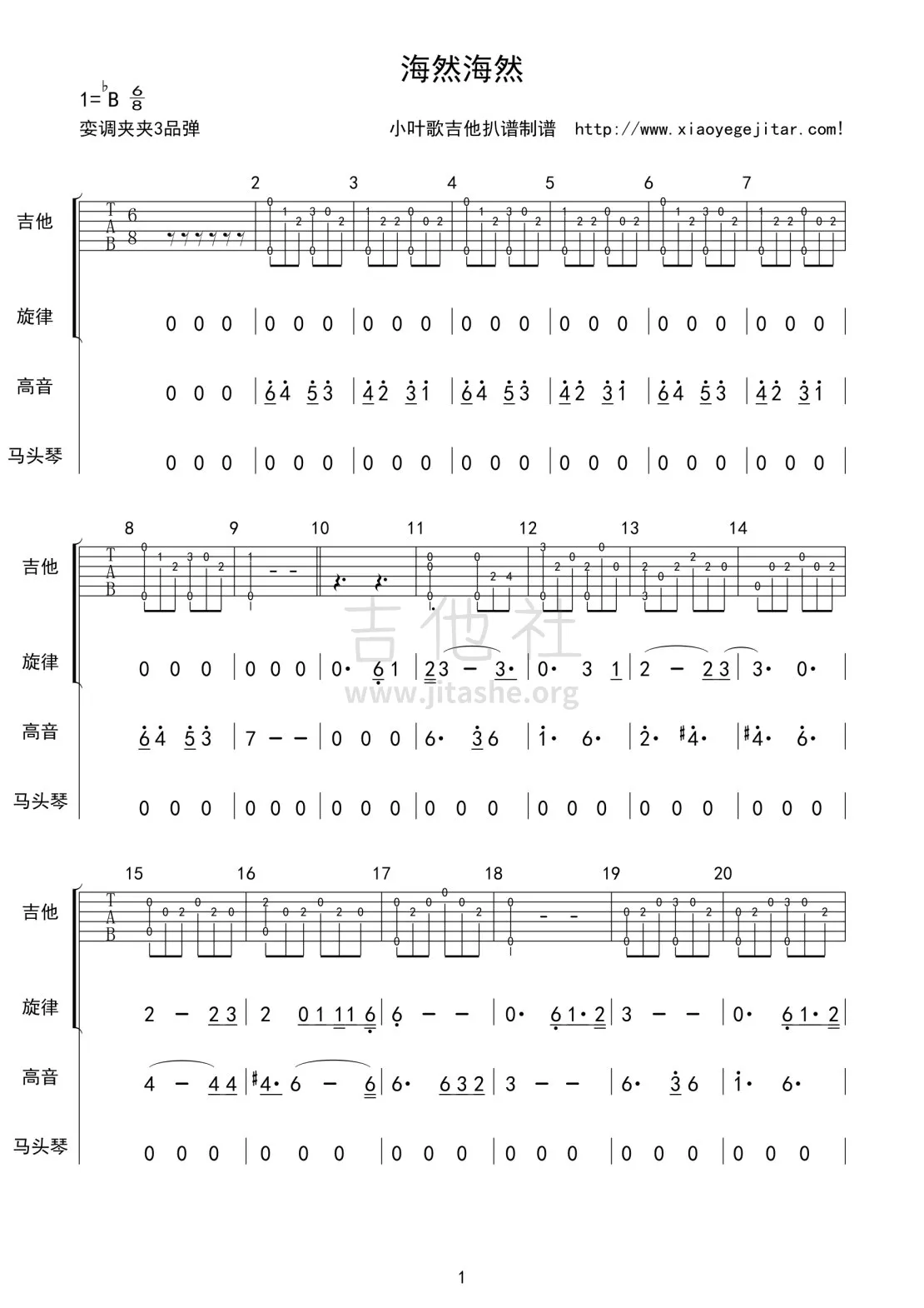 曲谱介绍: 杭盖《海然海然》吉他弹唱谱,采用B调指法编配,吉他社编配出品,共有5张高清图谱。