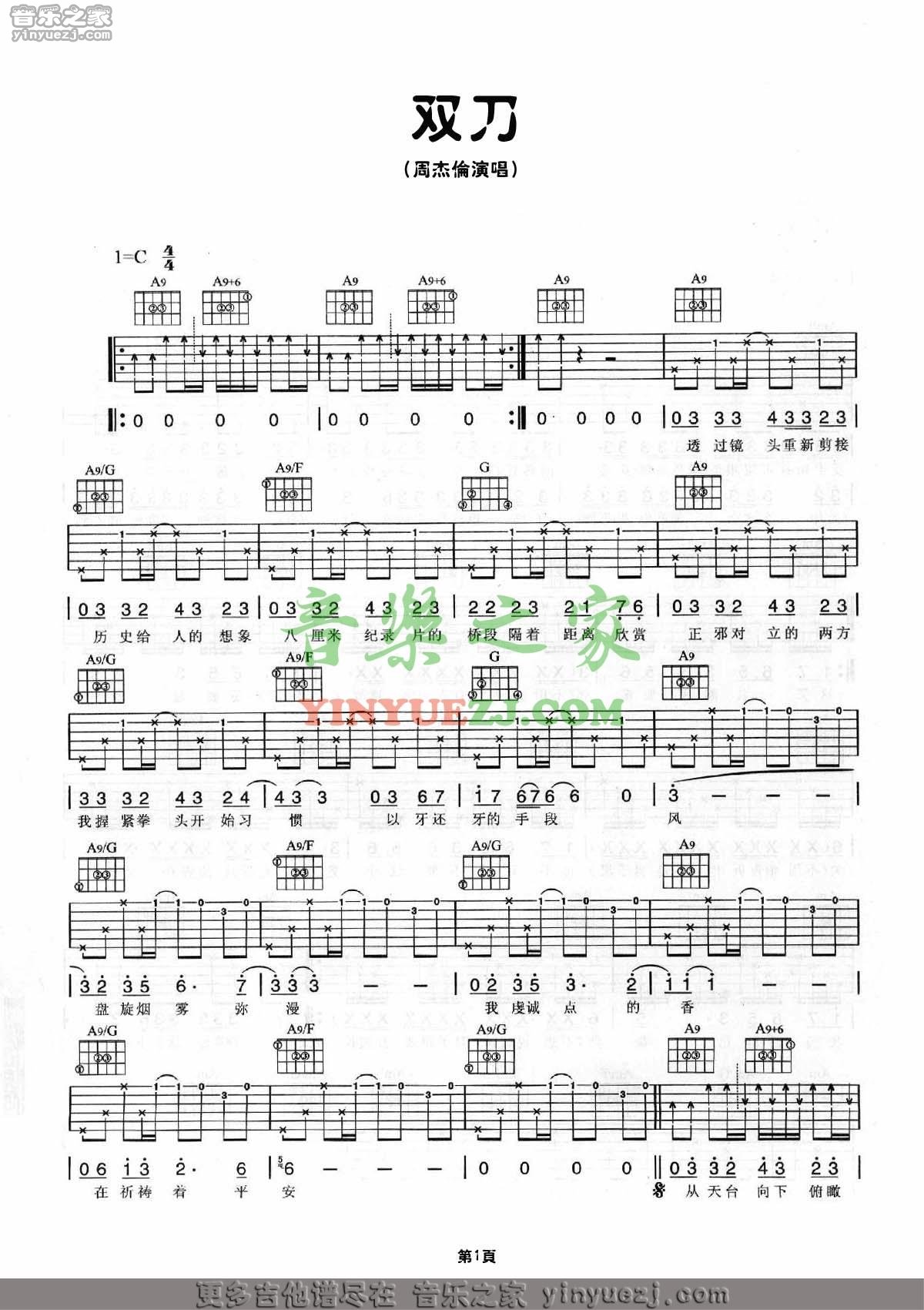 当前位置:琴谱网>吉他弹唱>双刀