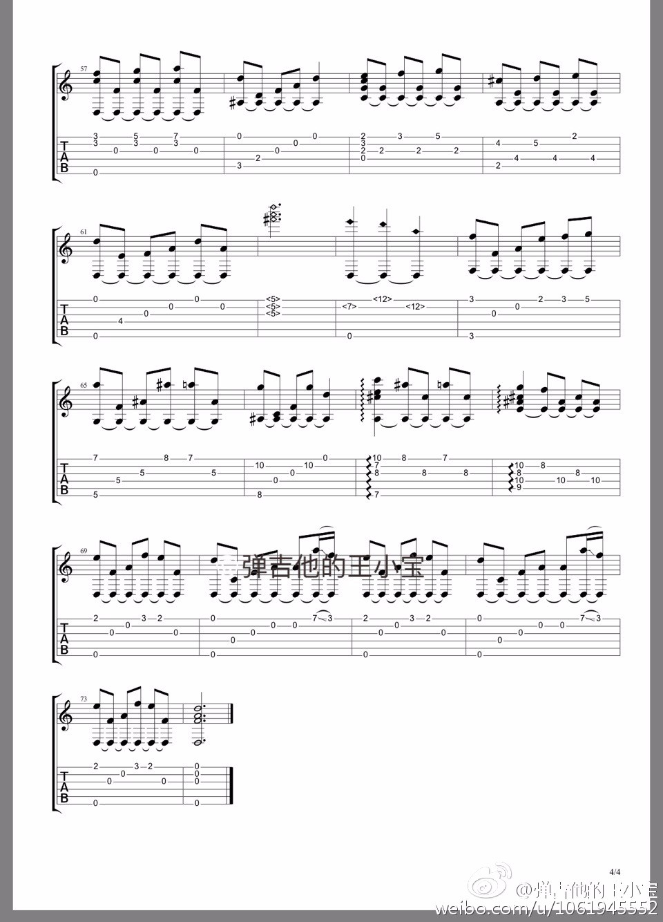 曲谱介绍: 张碧晨《时光笔墨》吉他独奏谱,采用D调指法编配,弹吉他的王小宝编配出品,共有4张高清图谱。