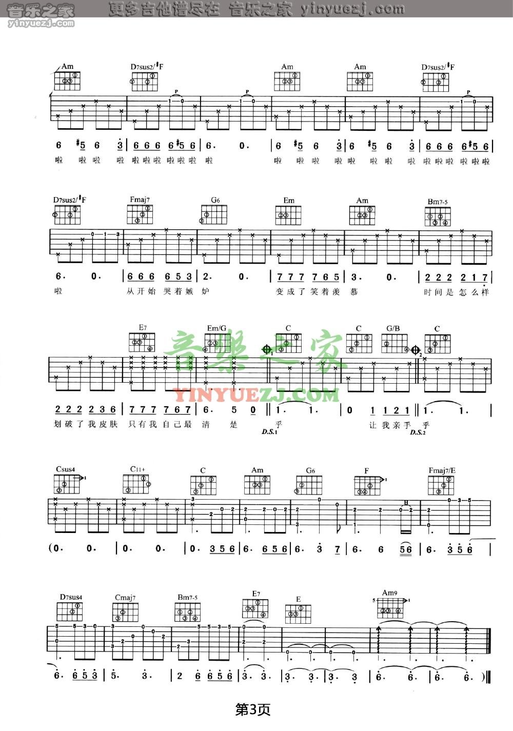 吉他弹唱C调来源:音乐之家135 浏览2024-01-20 21:33发布图谱共3页