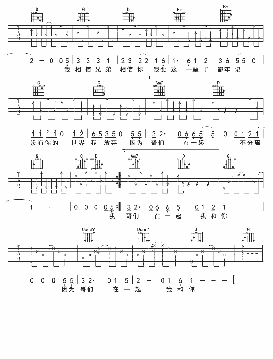 当前位置:琴谱网>吉他弹唱>兄弟我和你