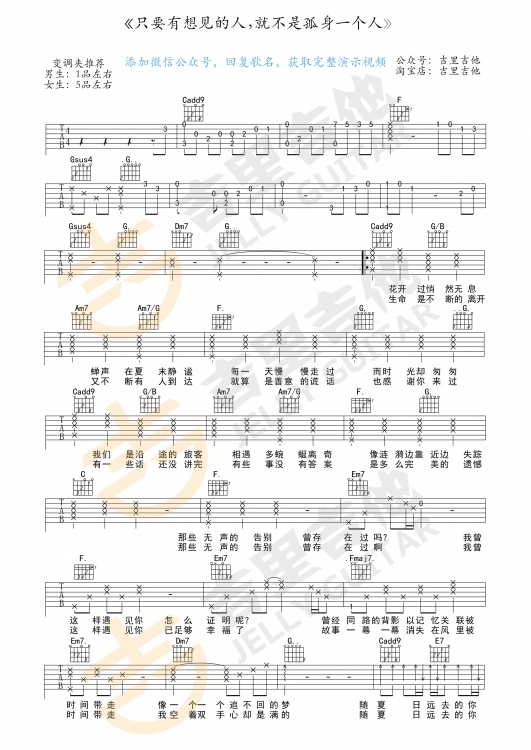 曲谱介绍: 只要有想见的人,就不是孤身一个人《只要有想见的人,就不是孤身一个人原调六线》吉他弹唱谱,吉里吉他编配出品,共有3张高清图谱。