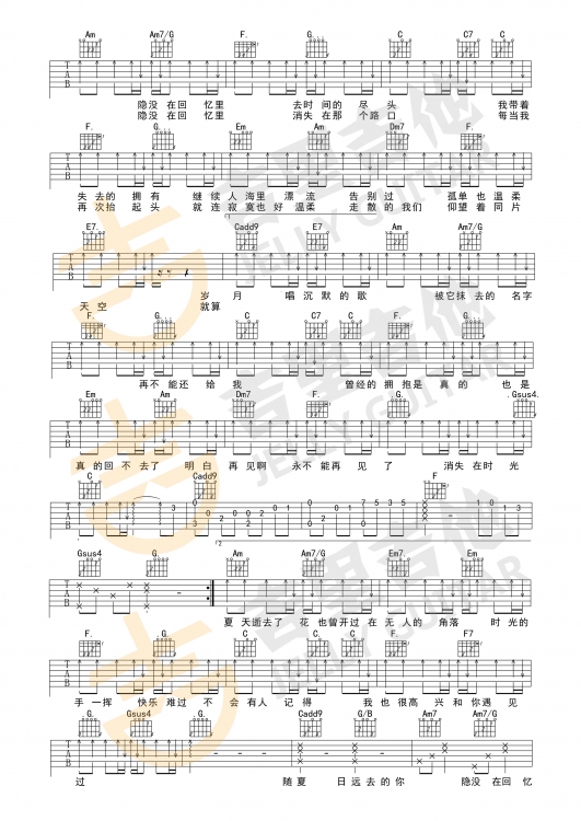 当前位置:琴谱网>吉他弹唱>只要有想见的人,就不是孤身一个人 原调六线