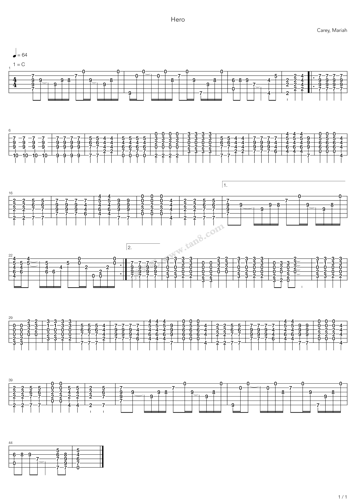 hero吉他谱 - Mariah - C调吉他独奏谱