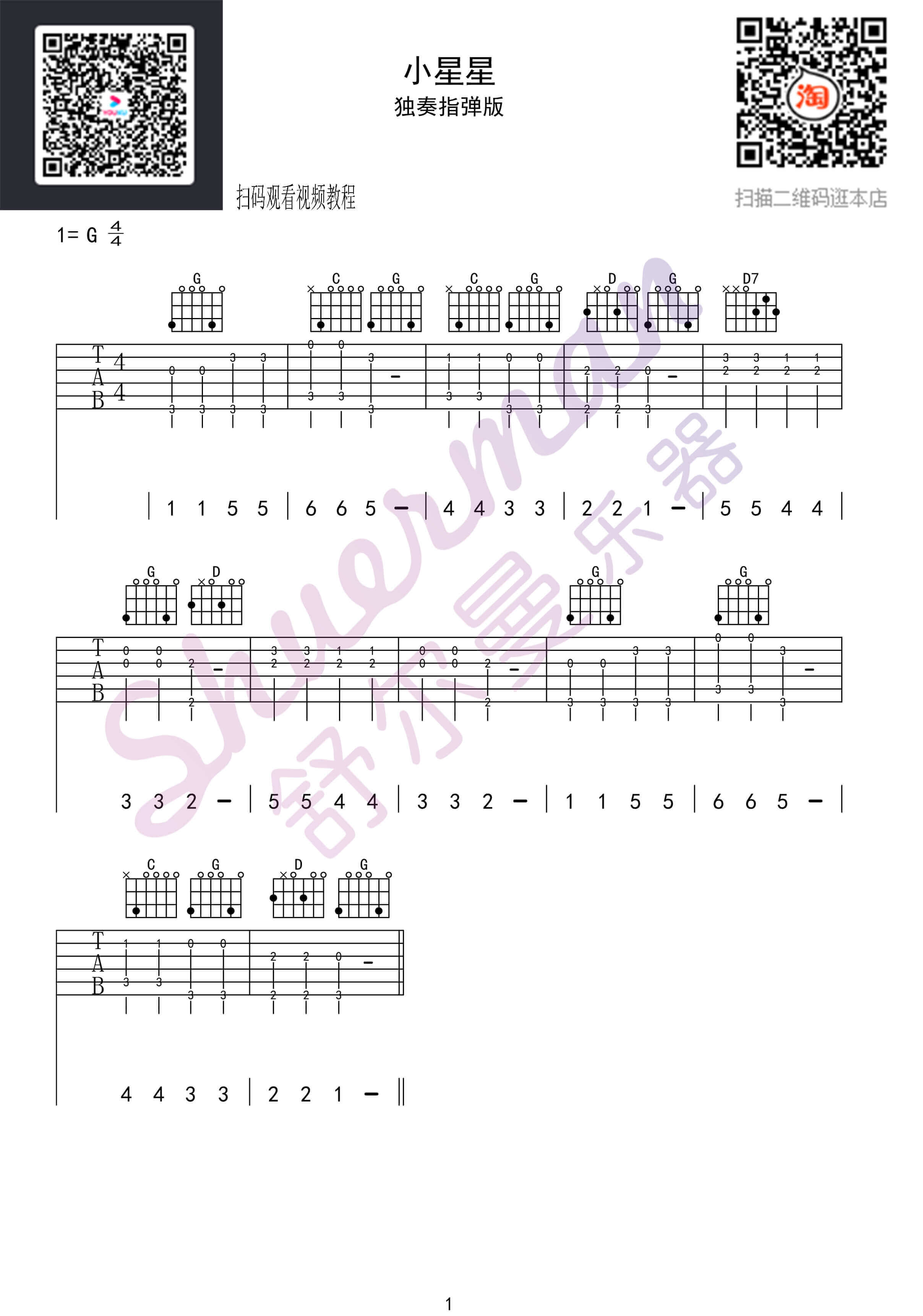 小星星吉他谱 - 吉他独奏谱