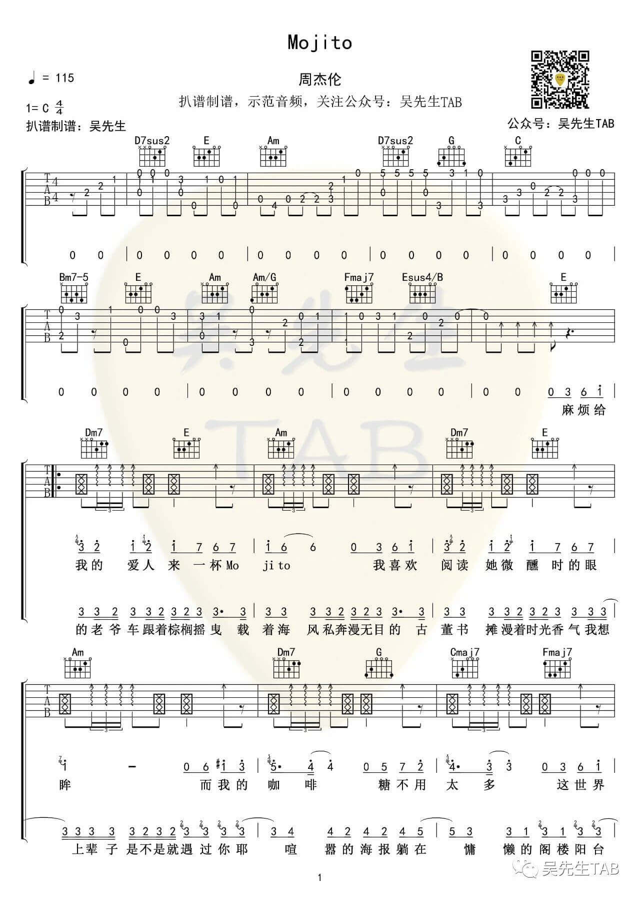 mojito吉他谱 - 周杰伦 - C调吉他弹唱谱