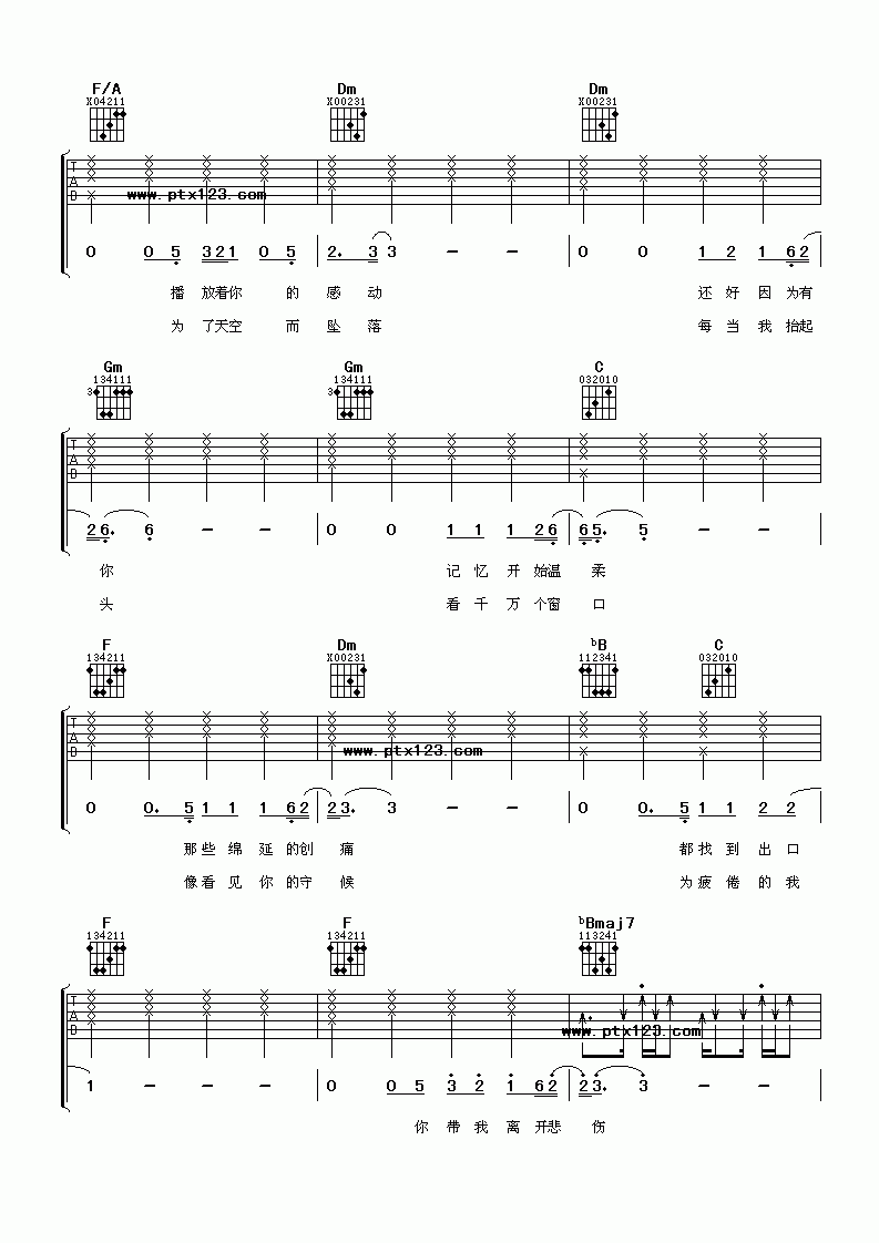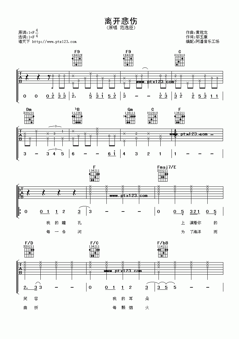 曲谱介绍: 范逸臣《范逸臣离开悲伤》吉他弹唱谱,共有4张高清图谱。