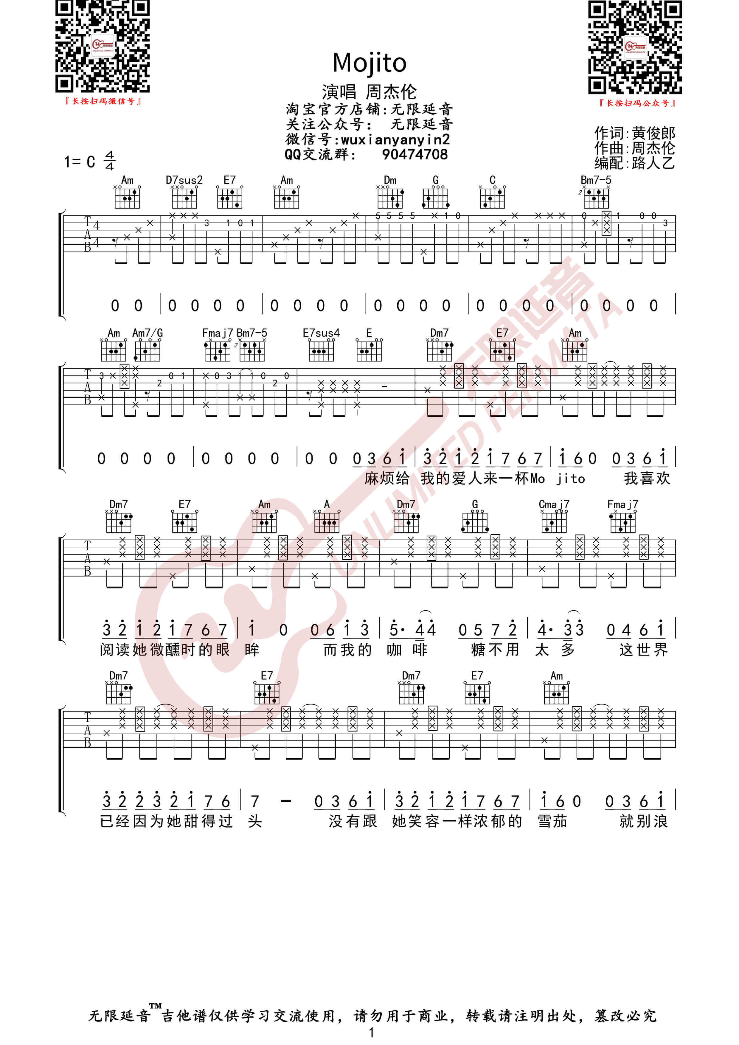 周杰伦 Mojito吉他谱 - 周杰伦 - C调吉他弹唱谱