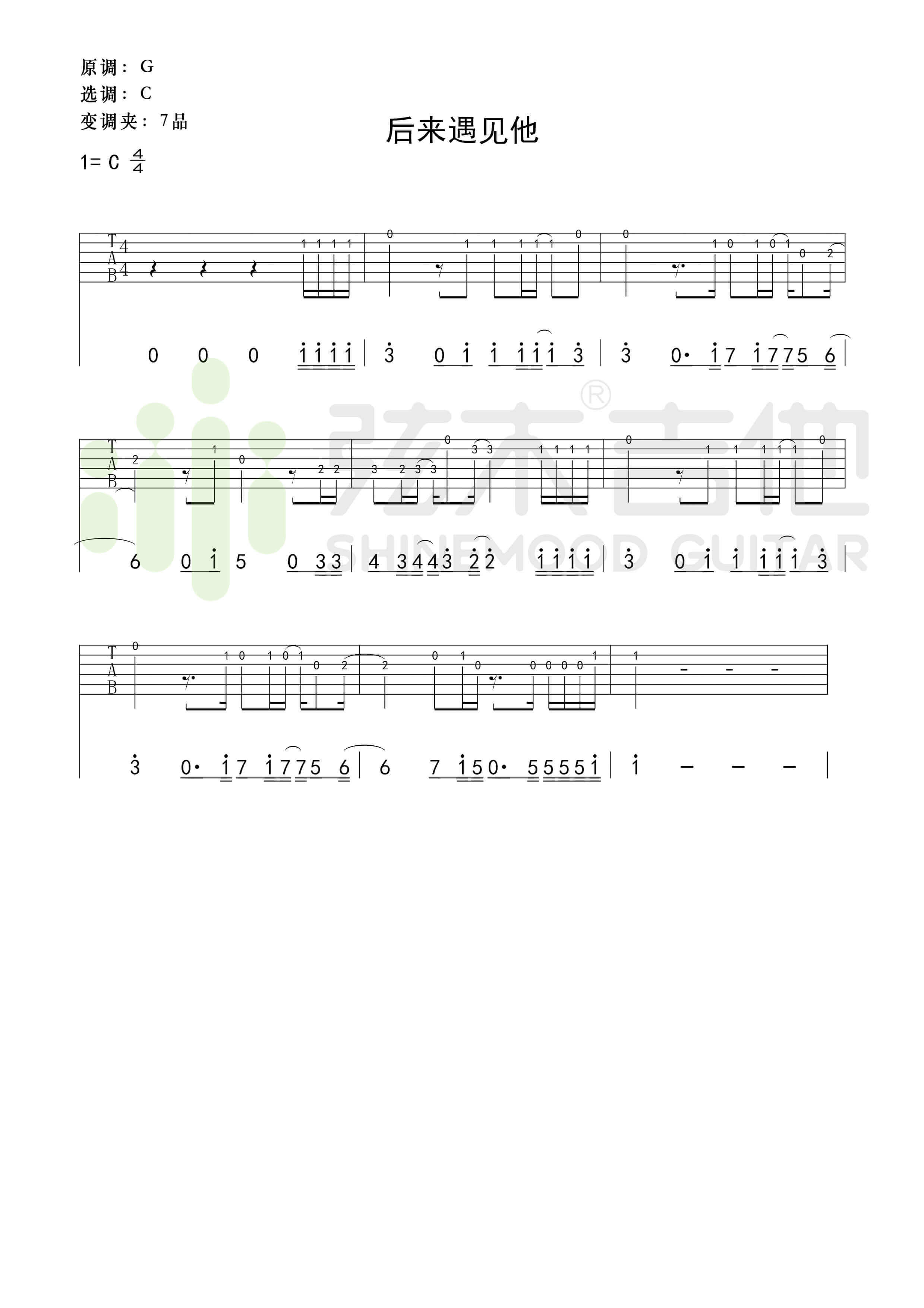 当前位置:琴谱网>吉他独奏>后来遇见他