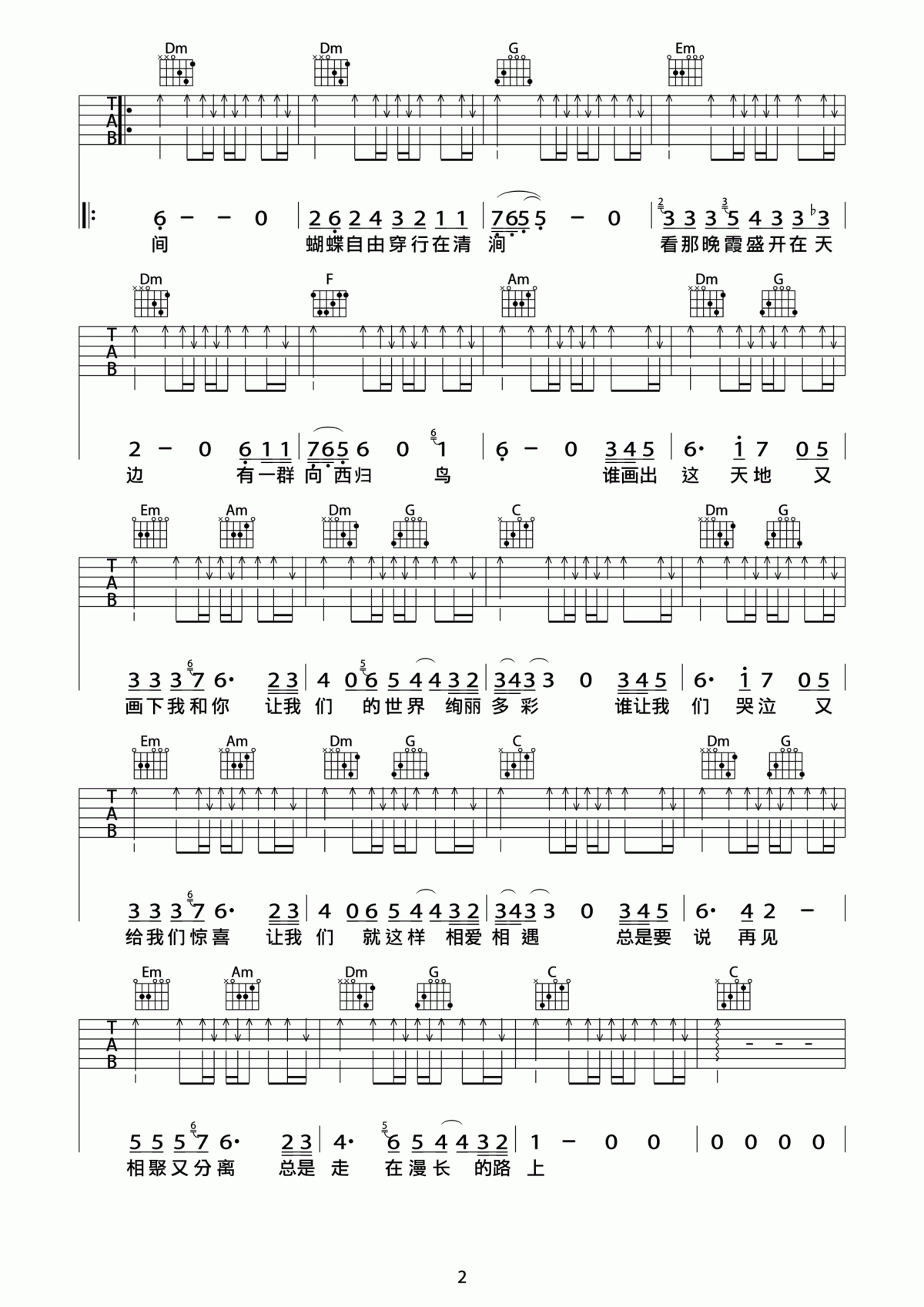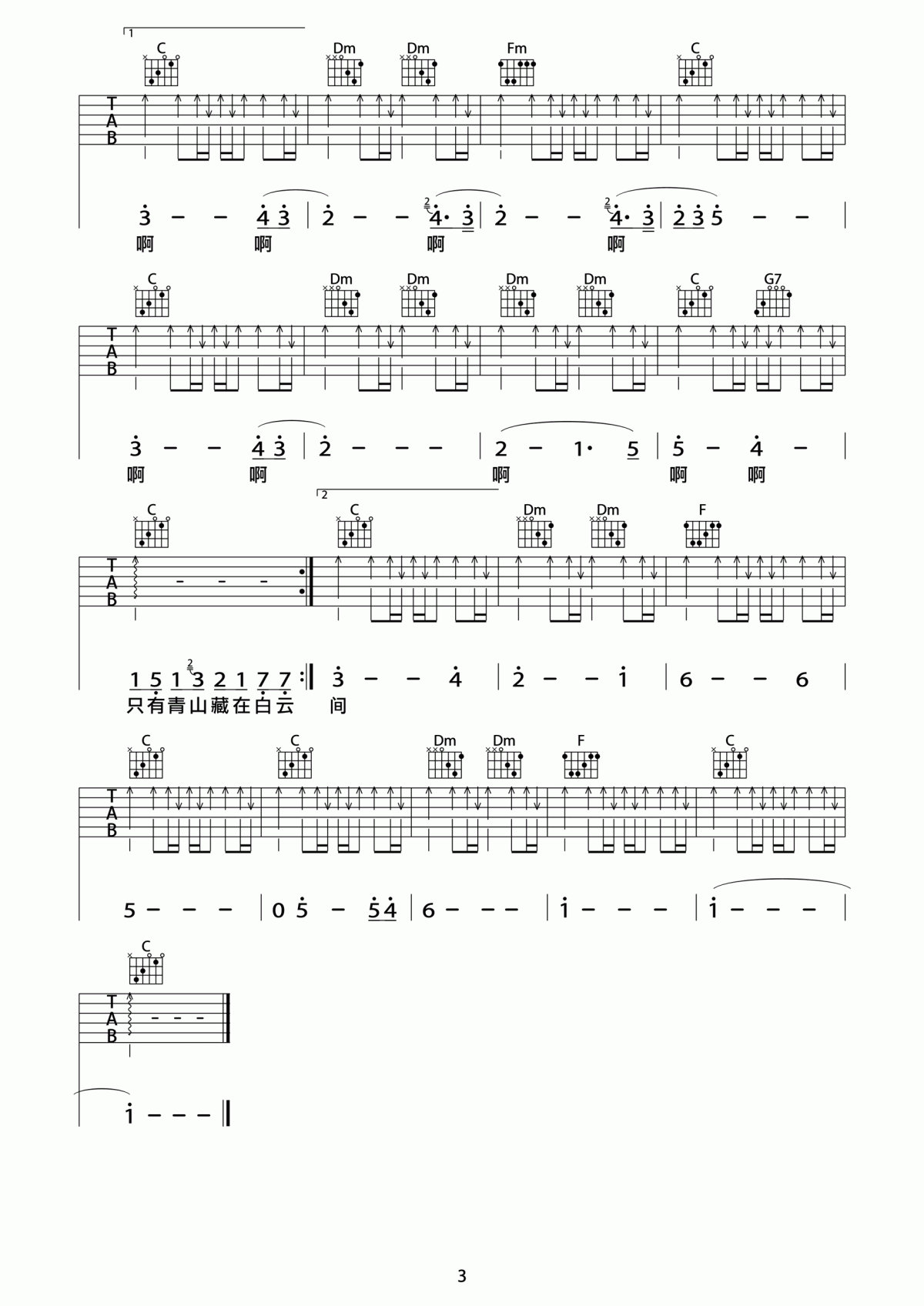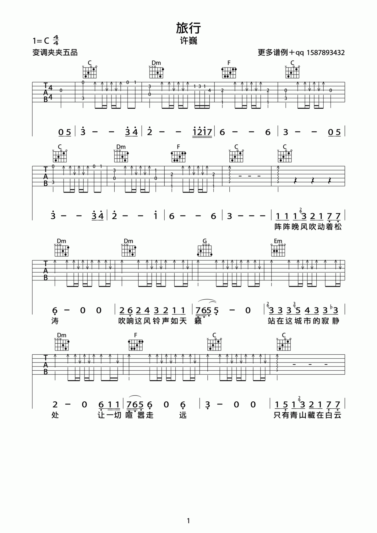曲谱介绍: 许巍《旅行》吉他弹唱谱,采用C调指法编配,共有3张高清图谱。