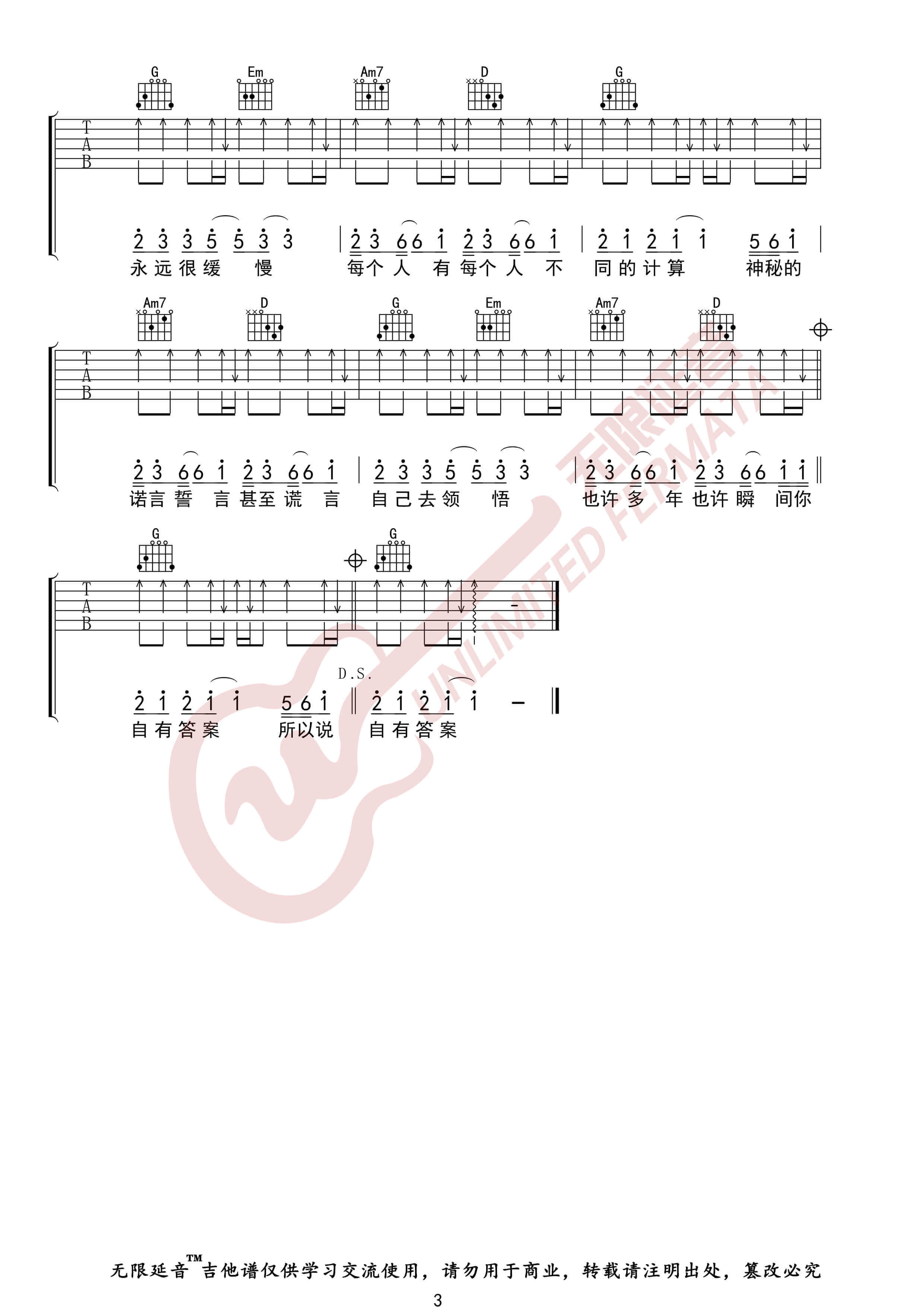 吉他弹唱来源:无限延音177 浏览2024-01-21 07:58发布图谱共3页