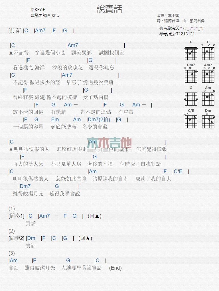 说实话_吉他谱 - 说实话 - 吉他弹唱谱