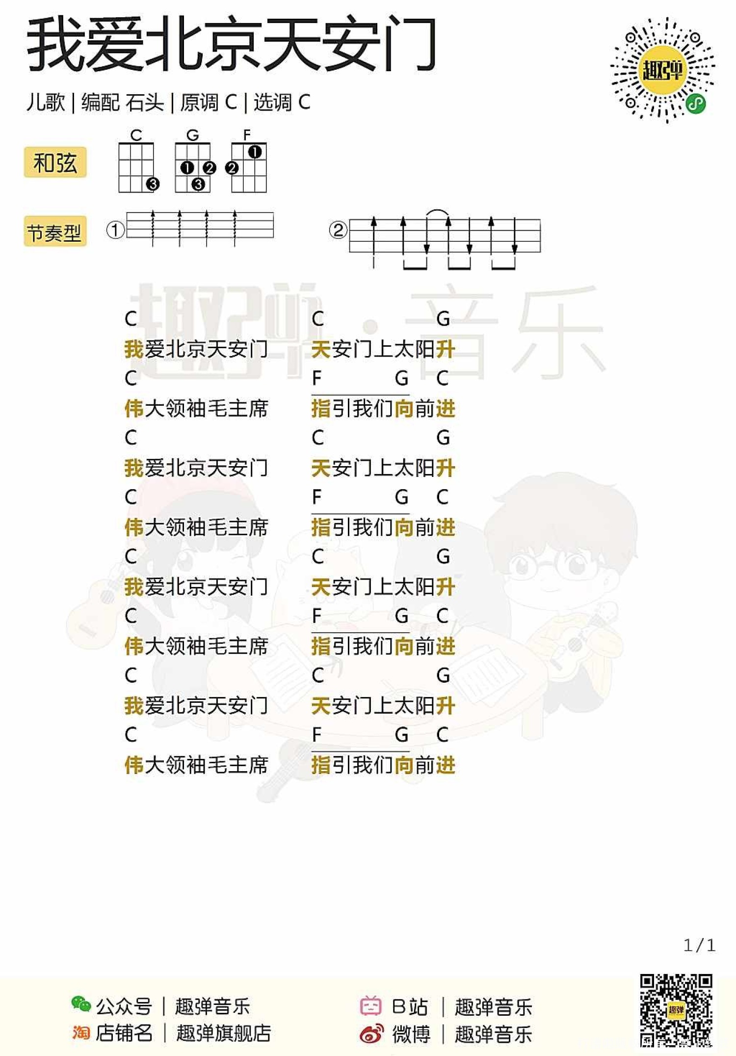 我爱北京天安门尤克里里谱 - 儿歌