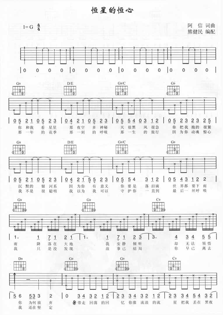 曲谱介绍: 五月天《恒星的恒心》吉他弹唱谱,采用C调指法编配,熊健民编配出品,共有2张高清图谱,免翻页排版设计。
