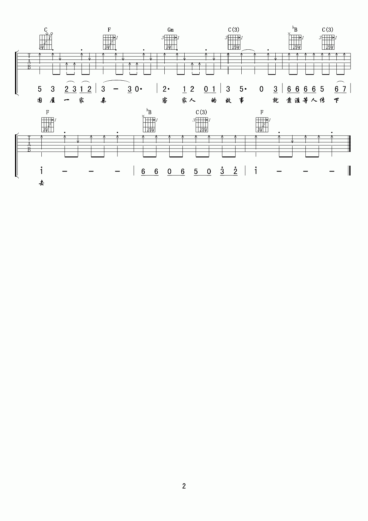 当前位置:琴谱网>吉他弹唱>围屋一家亲