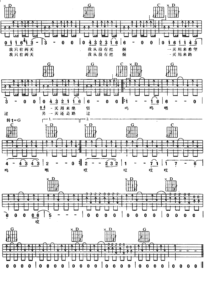 两天吉他谱 - 许巍 - D调吉他弹唱谱