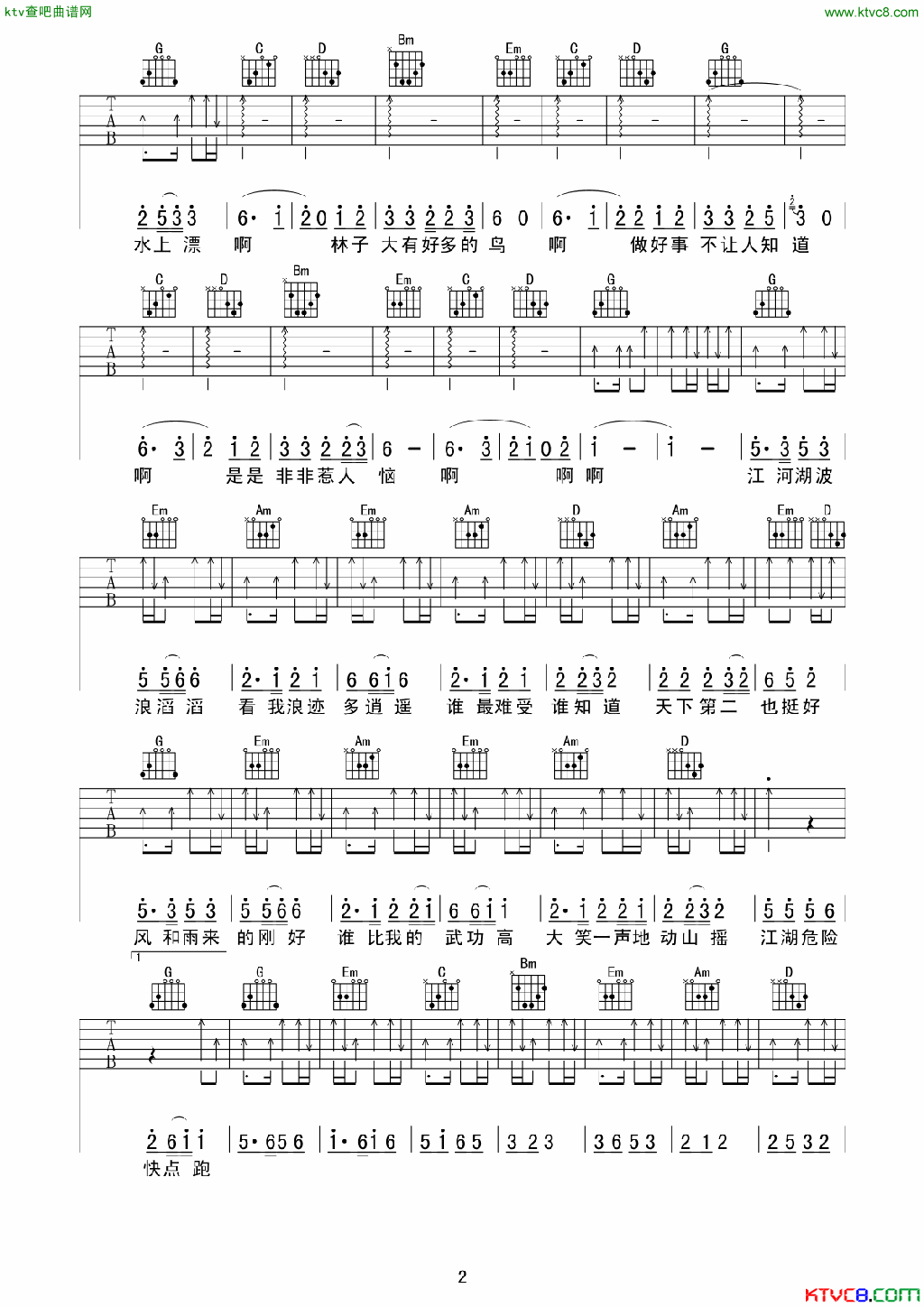 当前位置:琴谱网>吉他弹唱>大笑江湖