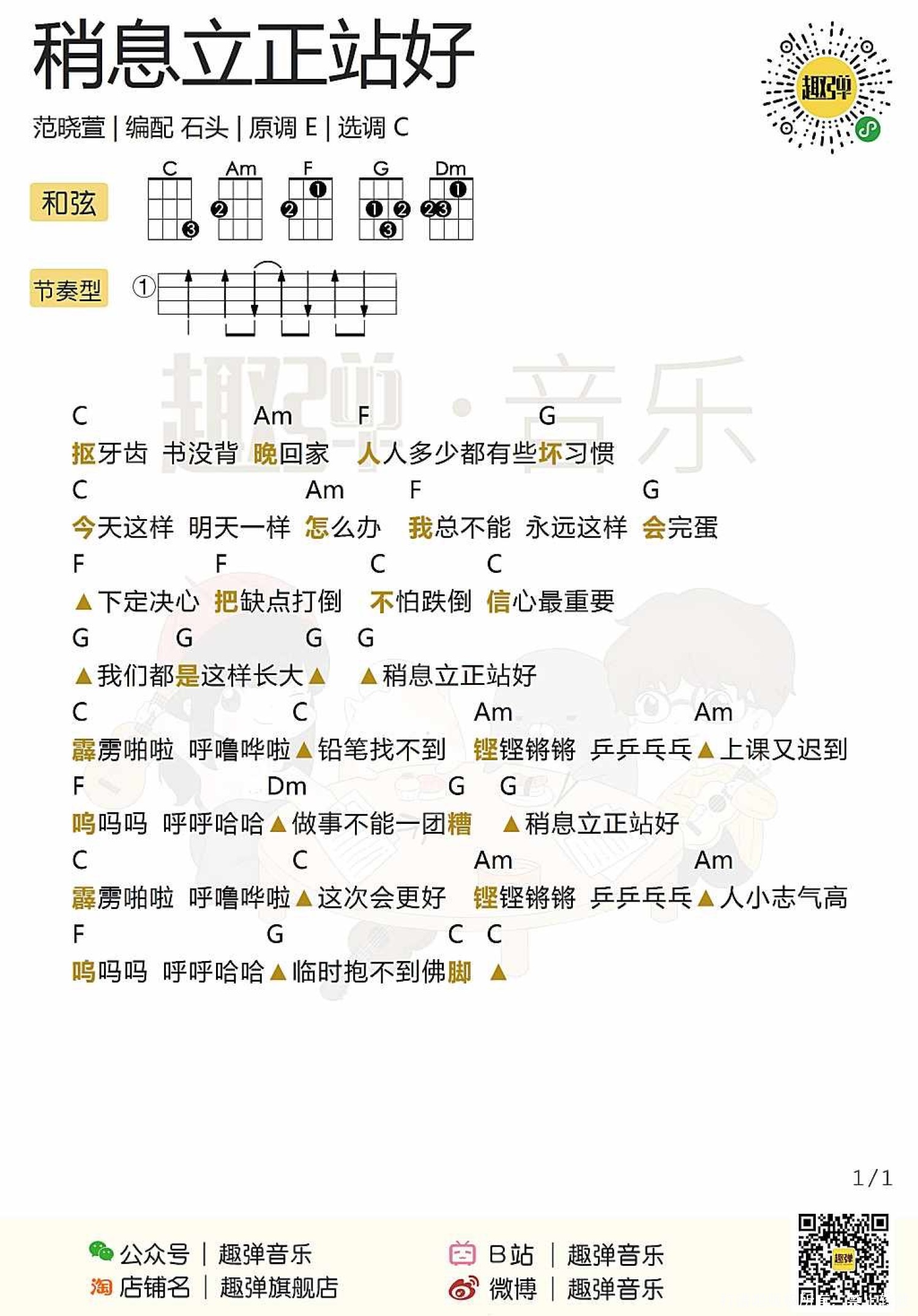 稍息立正站好尤克里里谱 - 范晓萱